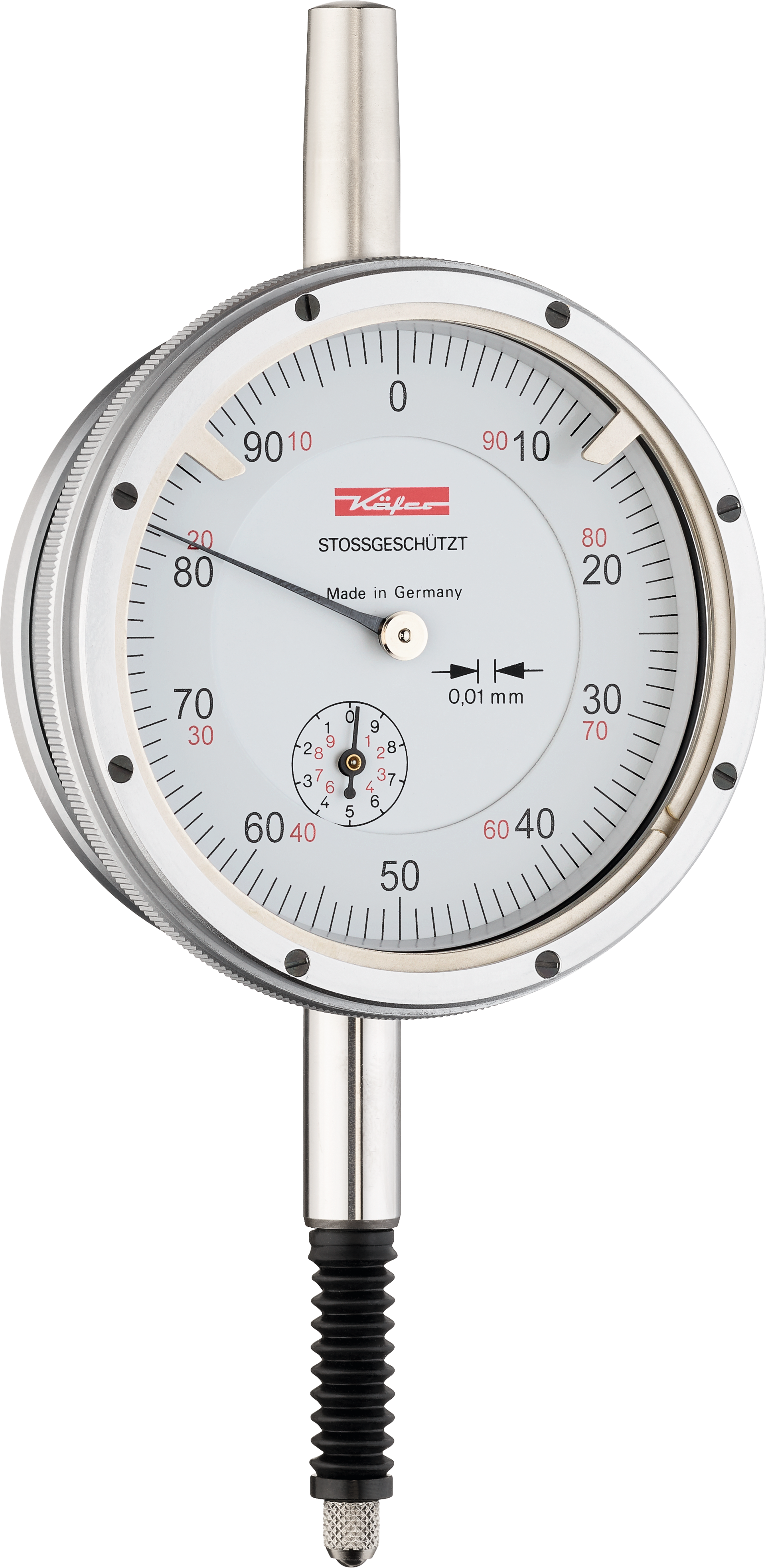 Messuhr stoßgeschützt DIN878 ZU1,0mm MS10mm Abl. 0,01mm AD58mm