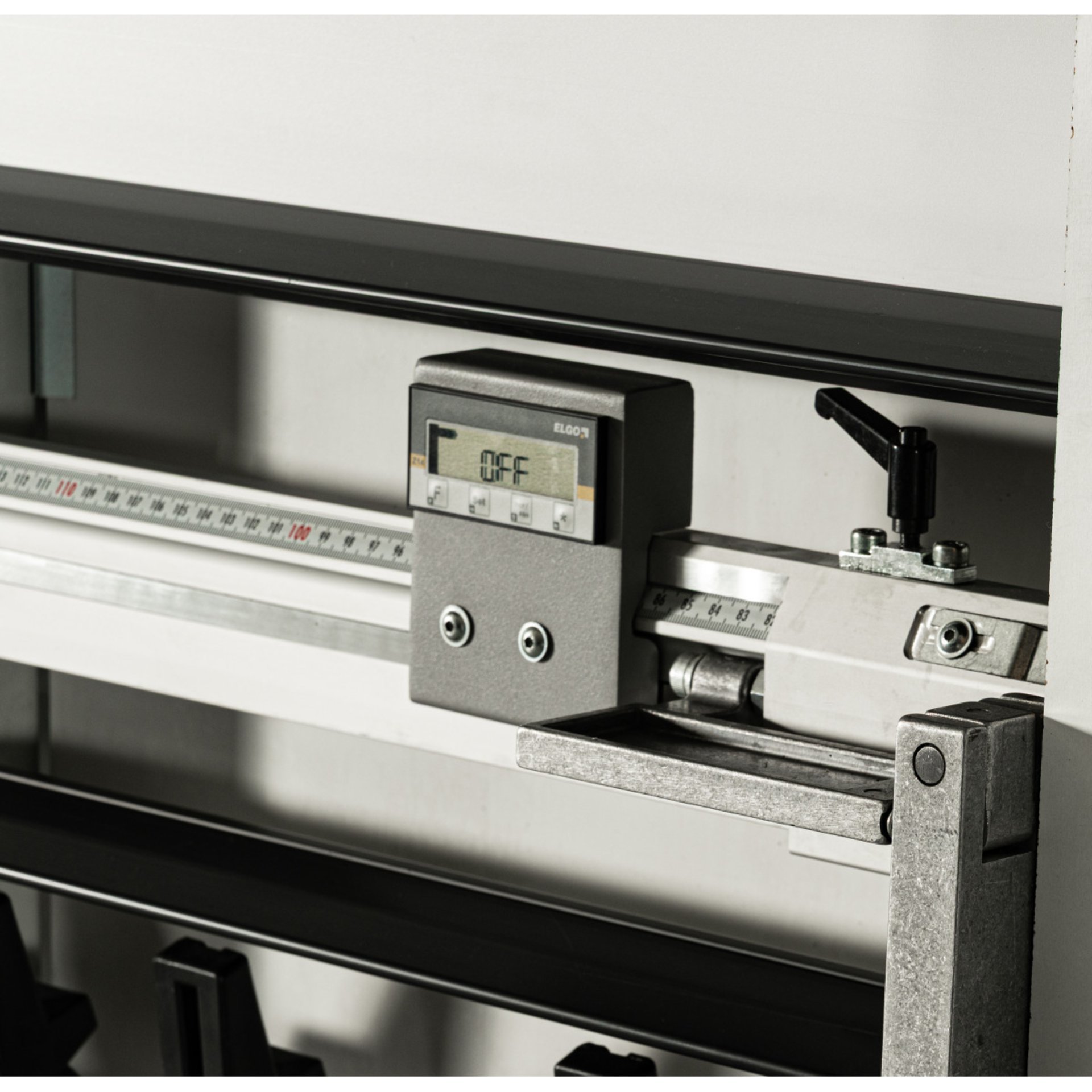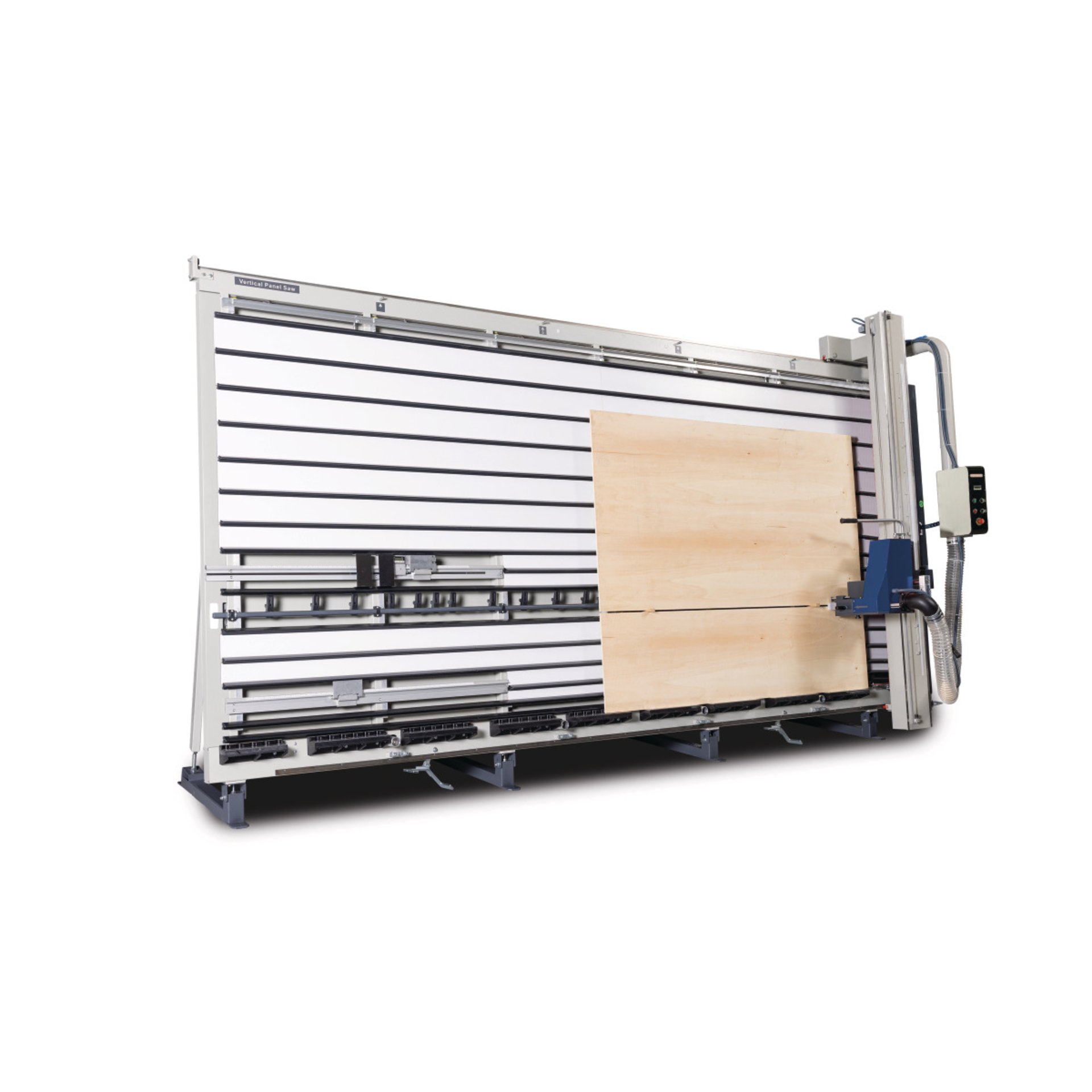 Vertikale Plattensäge mit Vorritzeinrichtung, Staubabsaugung und digitaler Maßanzeige