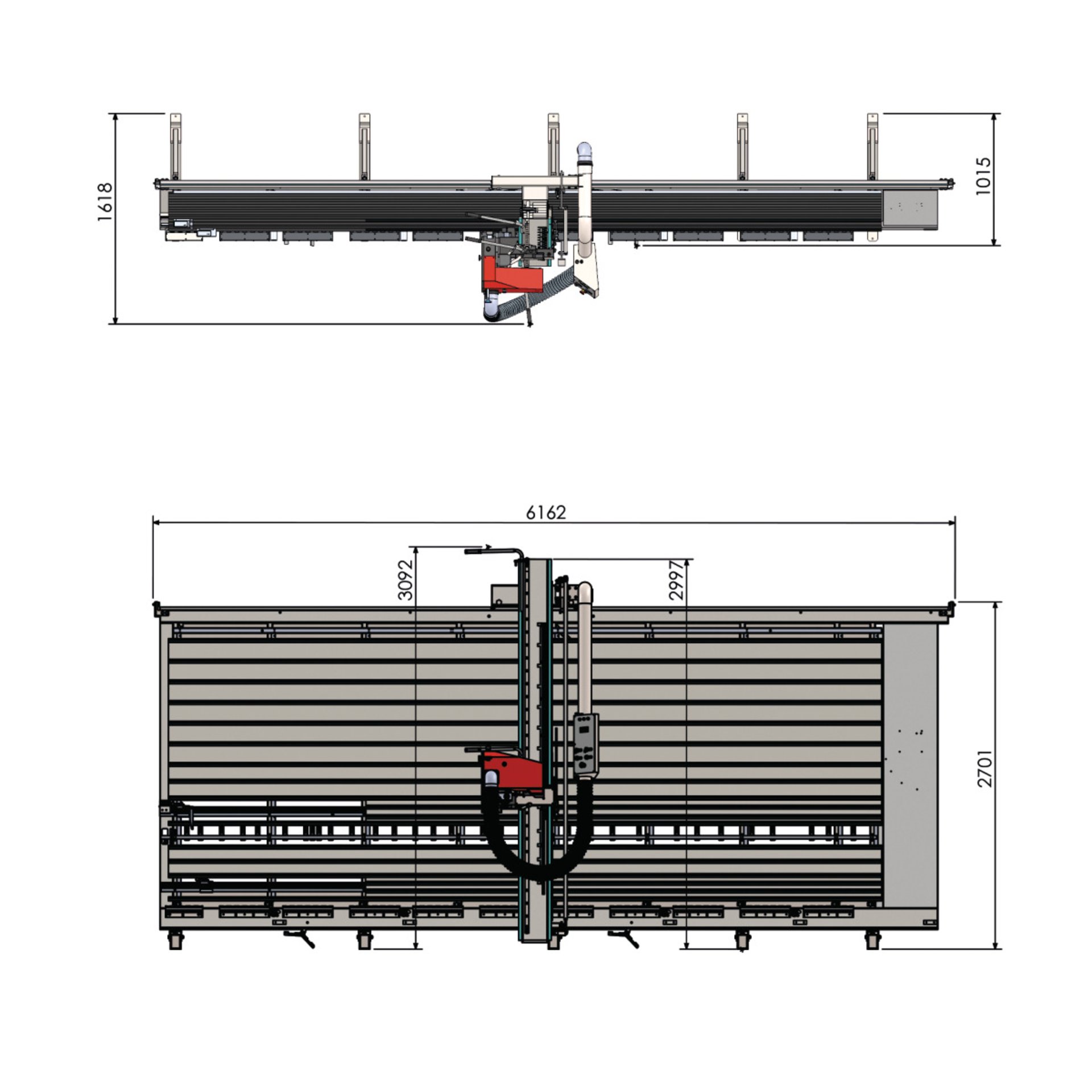 - Durchgängige mittlere Werkstückauflage für maximale Flexibilität