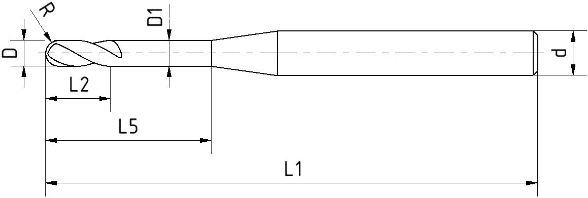 Vollraiduskopierfräser VHM TiAlCN Z2 Micro HSC Typ ALU WN/DIN6535-HA D1X20mm