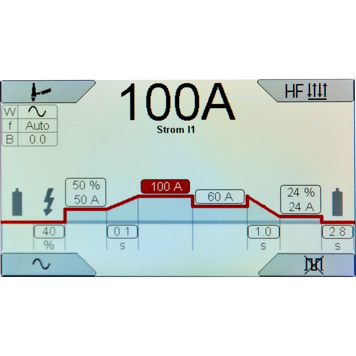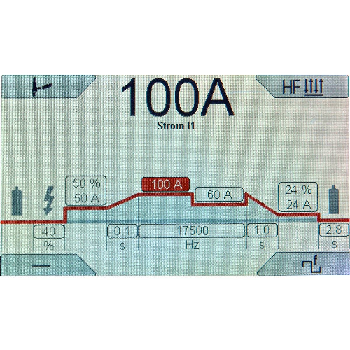 | Einschaltdauer bei max. Strom 40°C WIG: | 35 % |