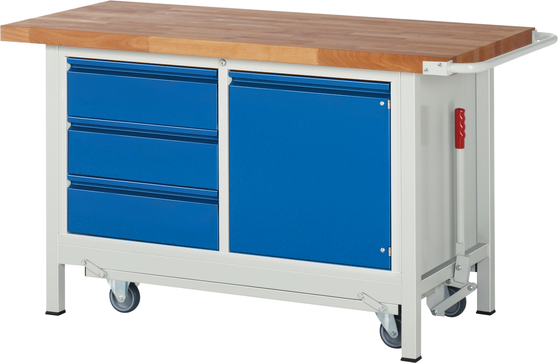 Werkbank Fahrgestell "EYL 2" RAL7035/5010 3 Schubladen 1 Tür T700 x H880 x B1500mm