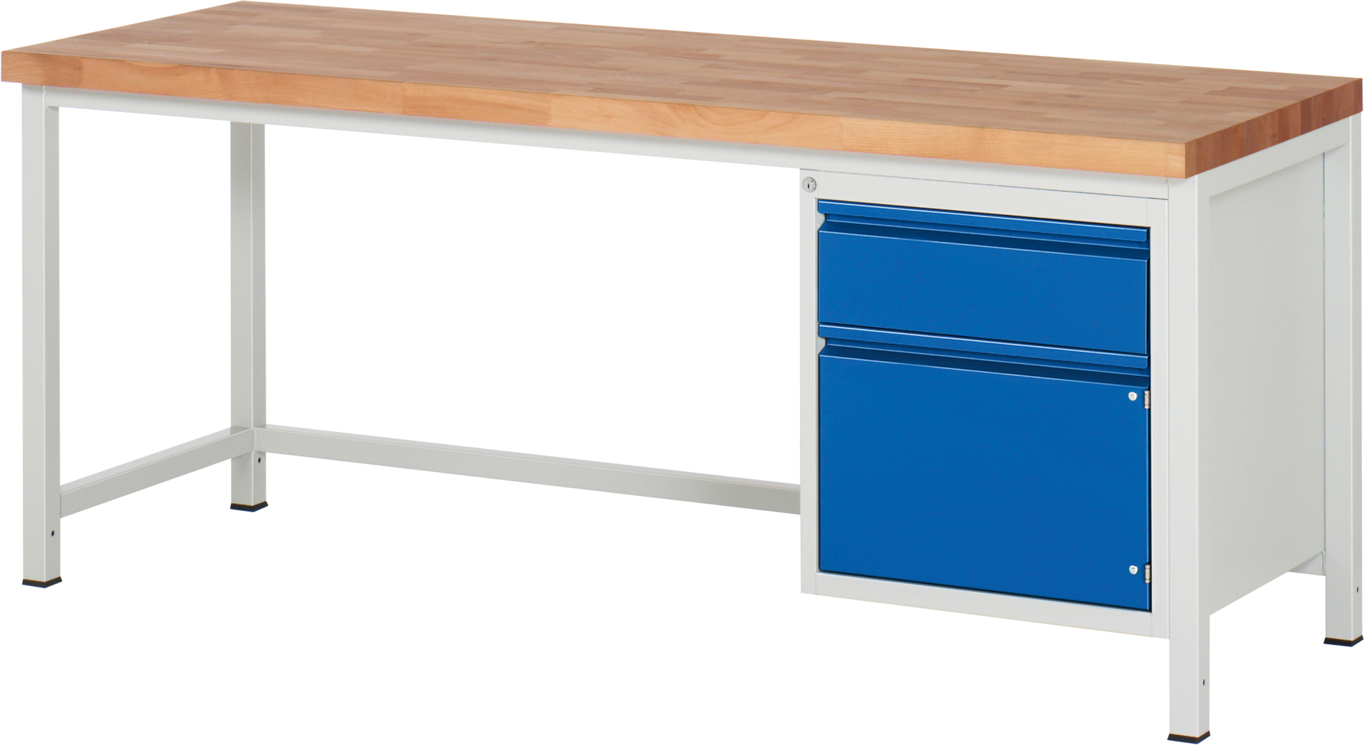 Werkbank Kompakt mit Höhenverstellung "EYL 2" Ned RAL7035/5010 1 Schublade, 1 Tür T700 x H840-1040 x B2000mm