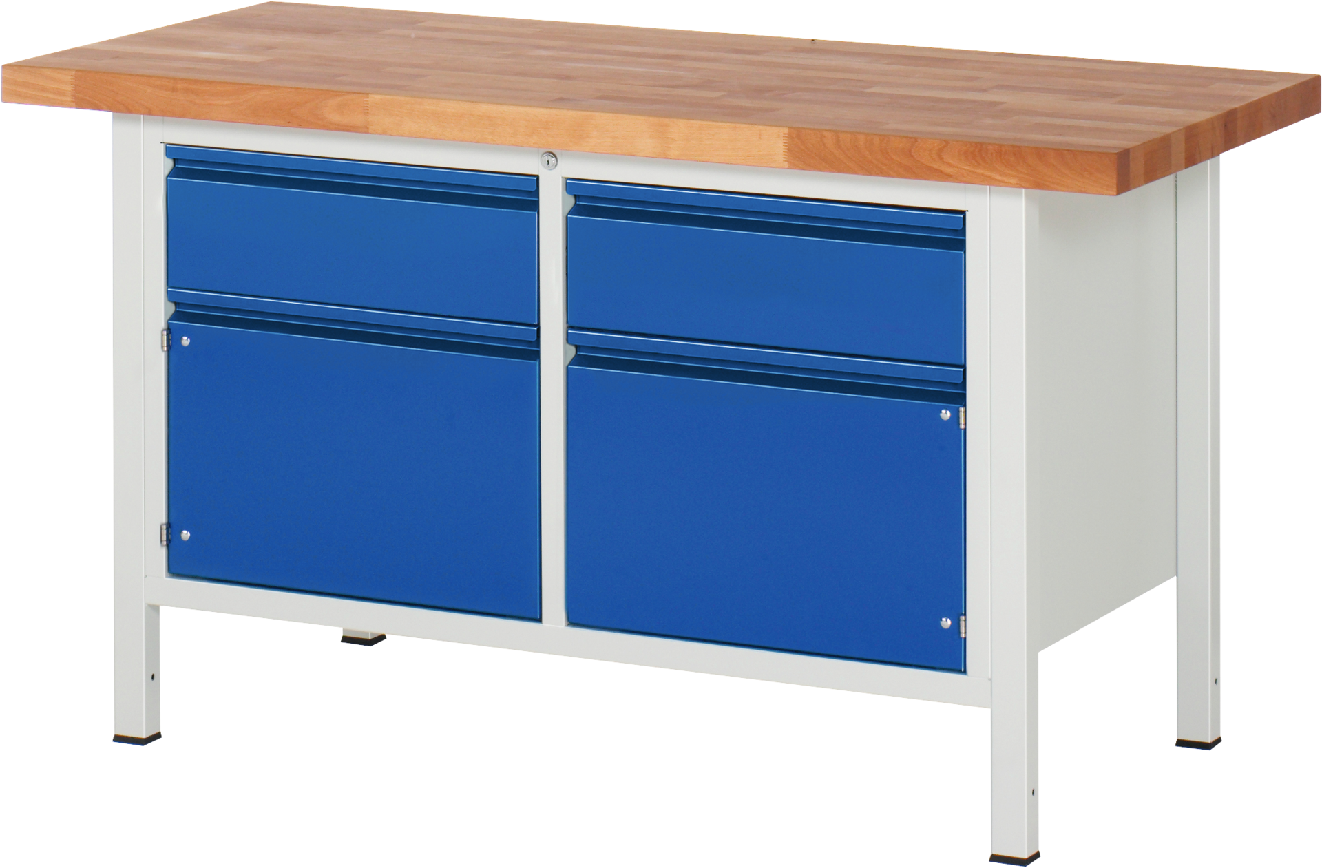 Werkbank Kompakt mit Höhenverstellung "EYL 2" Tim RAL7035/5010 2 Schubladen 2 Türen T700 x H840-1040 x B1500mm