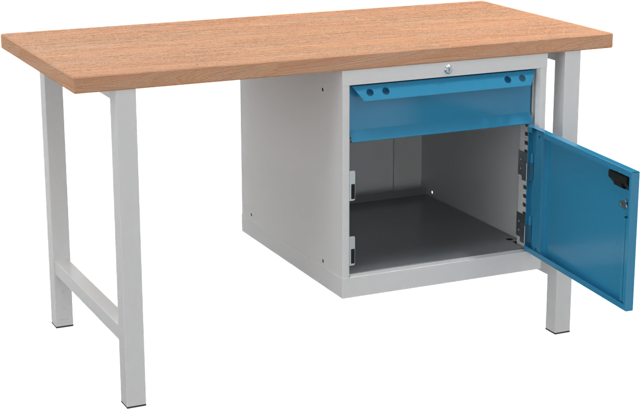 Werkbank Standard "EYL 1" RAL7035/5012 1 Schublade, 1 Flügeltür H840 x T700 x B1500mm
