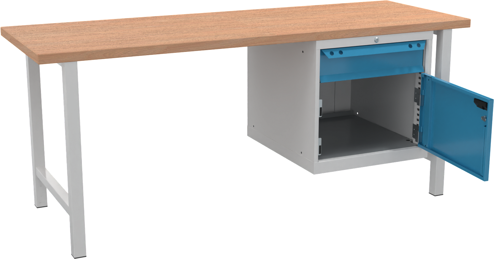 Werkbank Standard "EYL 1" RAL7035/5012 1 Schublade, 1 Flügeltür H840 x T700 x B2000mm