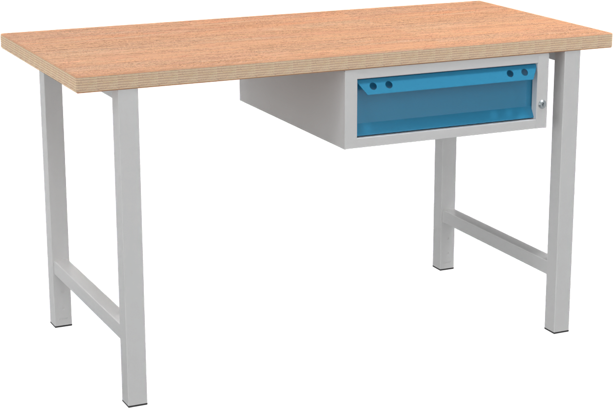 Werkbank Standard "EYL 1" RAL7035/5012 1 Schublade, 2 Füße H840 x T700 x B1500mm