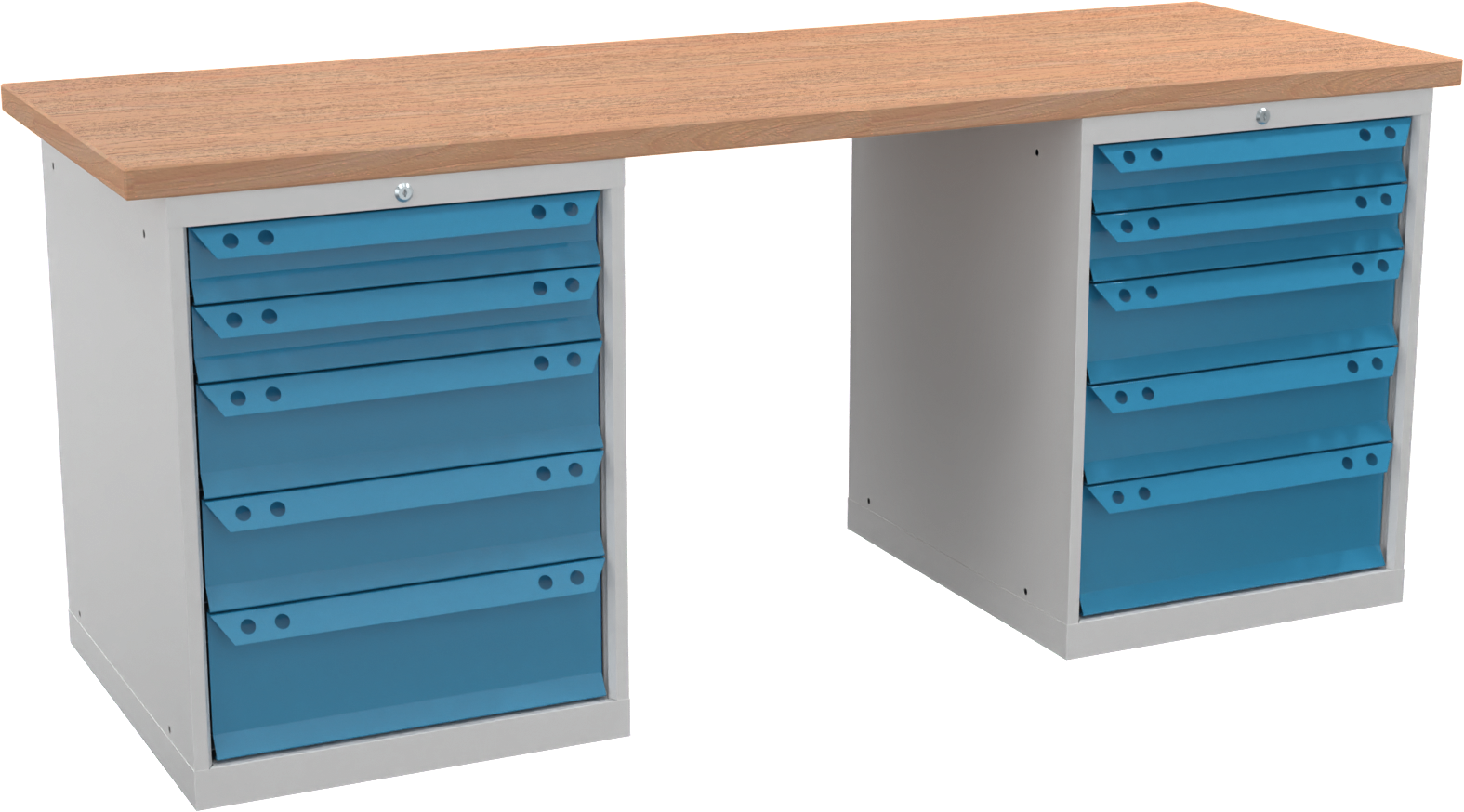 Werkbank Standard "EYL 1" RAL7035/5012 10 Schubladen H840 x T700 x B2000mm
