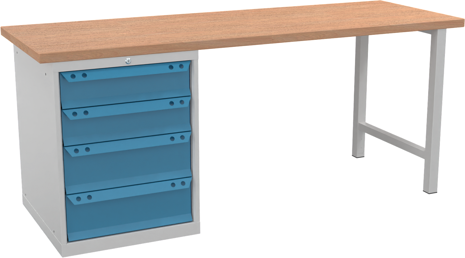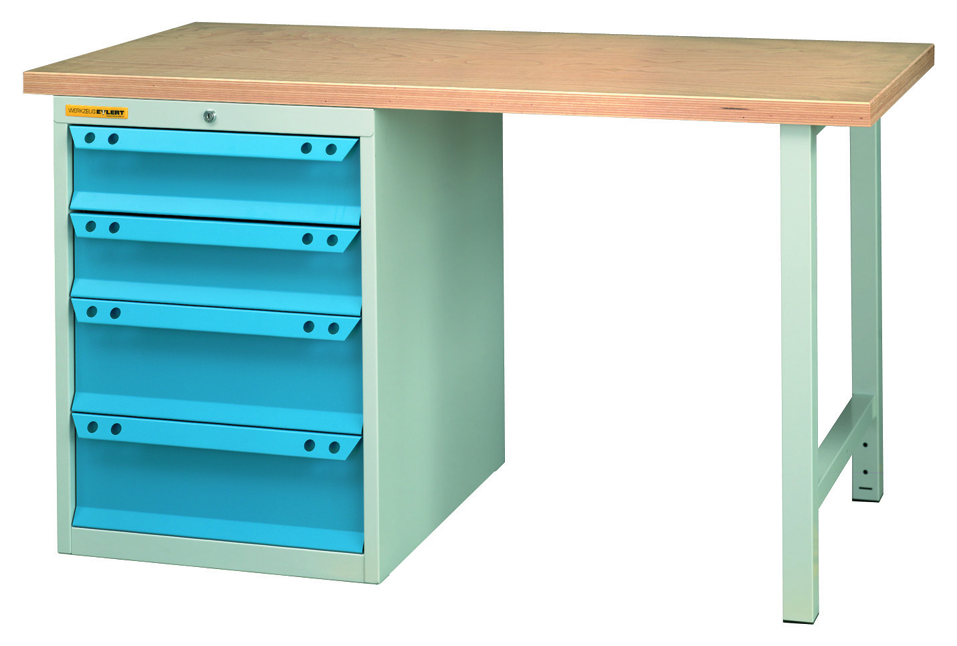 Werkbank Standard "EYL 1" RAL7035/5012 4 Schubladen, 1 Fuß H840 x T700 x B2000mm