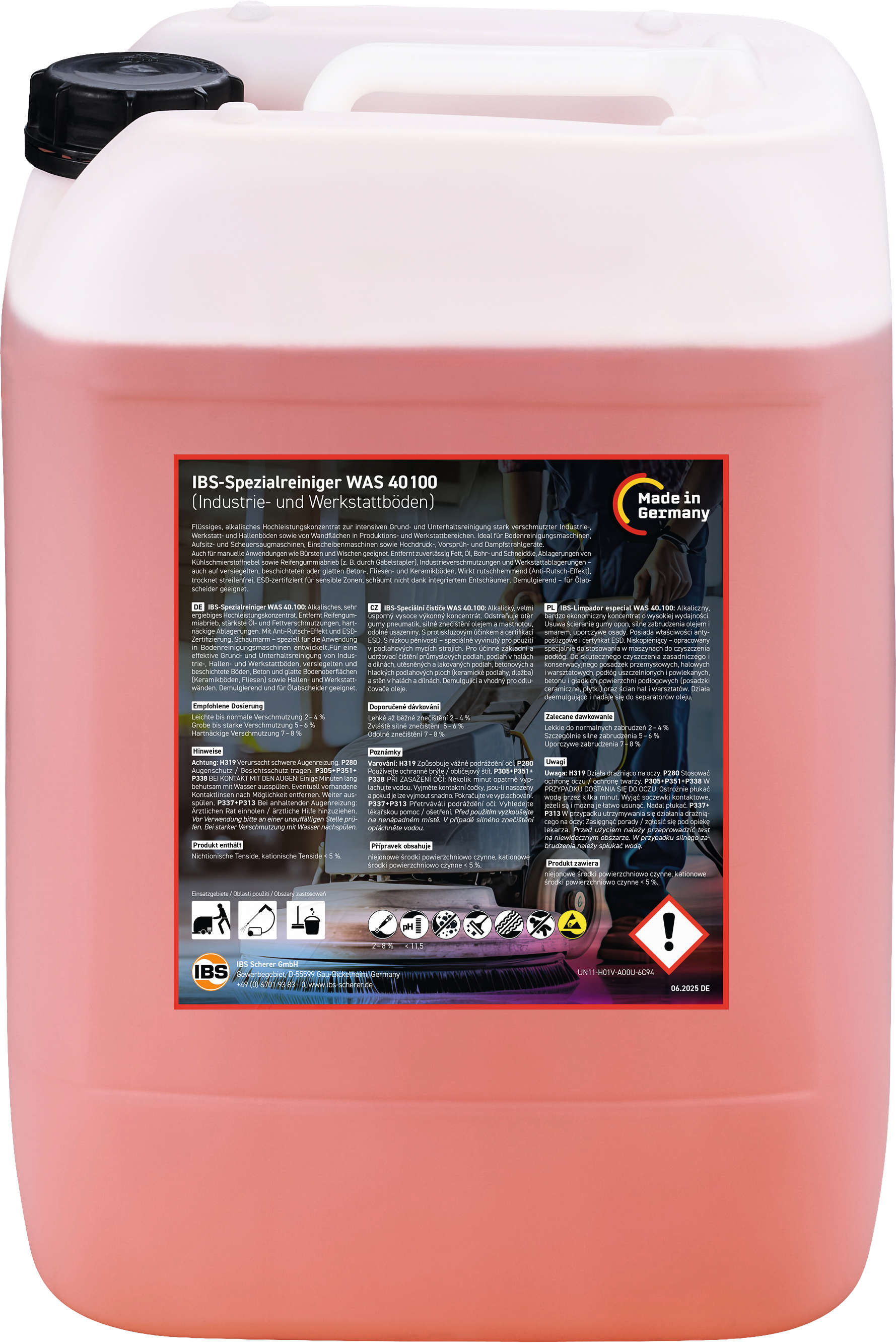 alkalischer Reiniger, schaumarm, Anti-Rutsch-Effekt, ESD zertifiziert, trocknet streifenfrei, demulgierend, silikonfrei, leicht biologisch abbaubar
