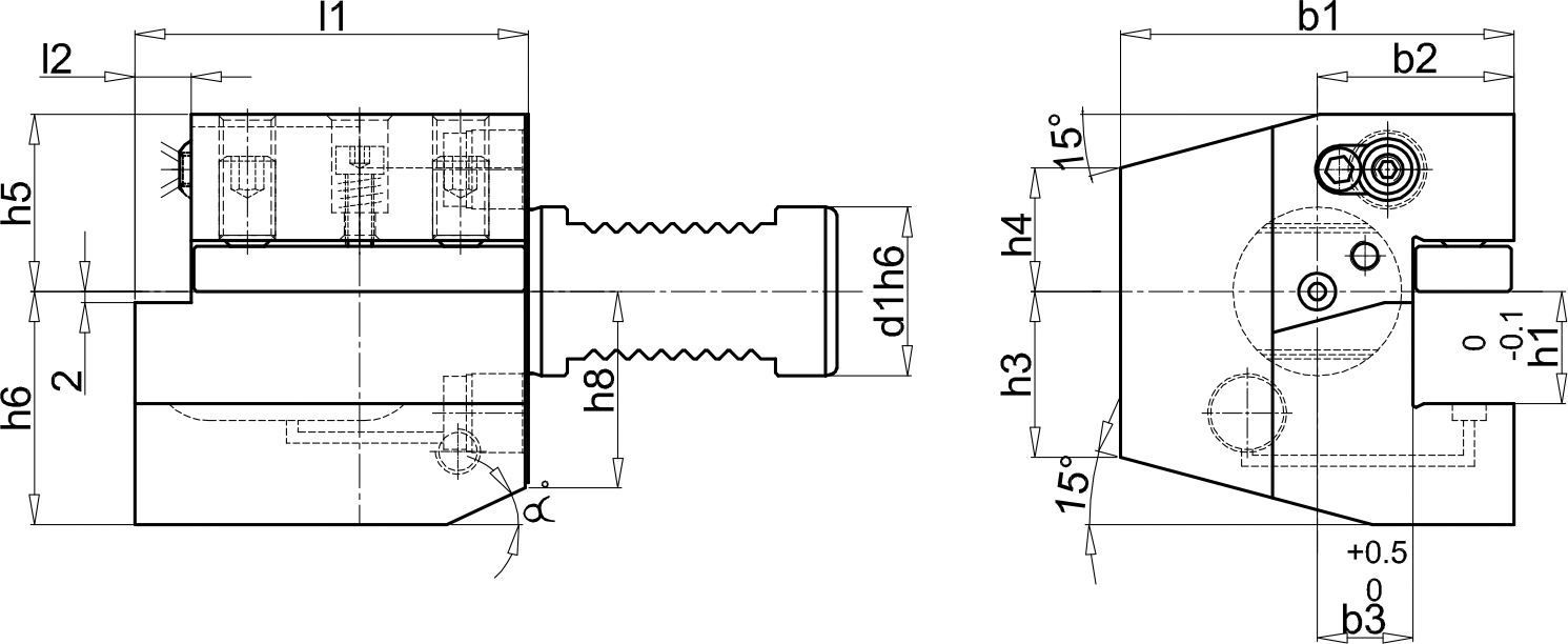 Werkzeughalter axial C1 rechts, Überkopf C4 links VDI40 H21xL85xB85mm DIN69880