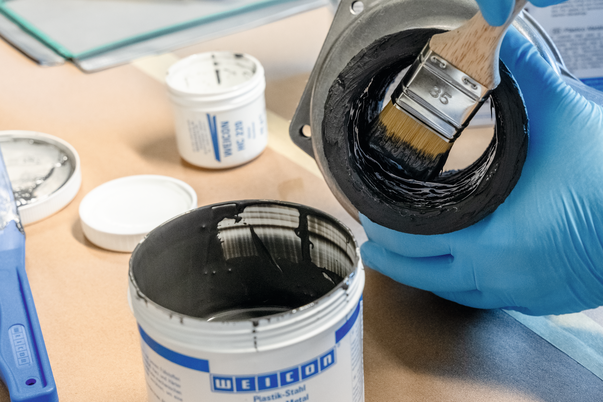 fließfähig, keramikgefüllt, hohe Temperaturbeständigkeit, hohe Abriebfestigkeit und Haftkraft, nicht korrodierend, hoher Verschleißschutz für stark beanspruchte Oberflächen, fast schrumpffrei aushärtend, max. Schichtstärke je Arbeitsgang 10 mm, mechanisch belastbar nach ca. 6 h, zur Oberflächenvorbehandlung empfehlen wir den Sprühreiniger S (Art.-Nr. 89252), mit Trinkwasserzulassung nach BS 6922
