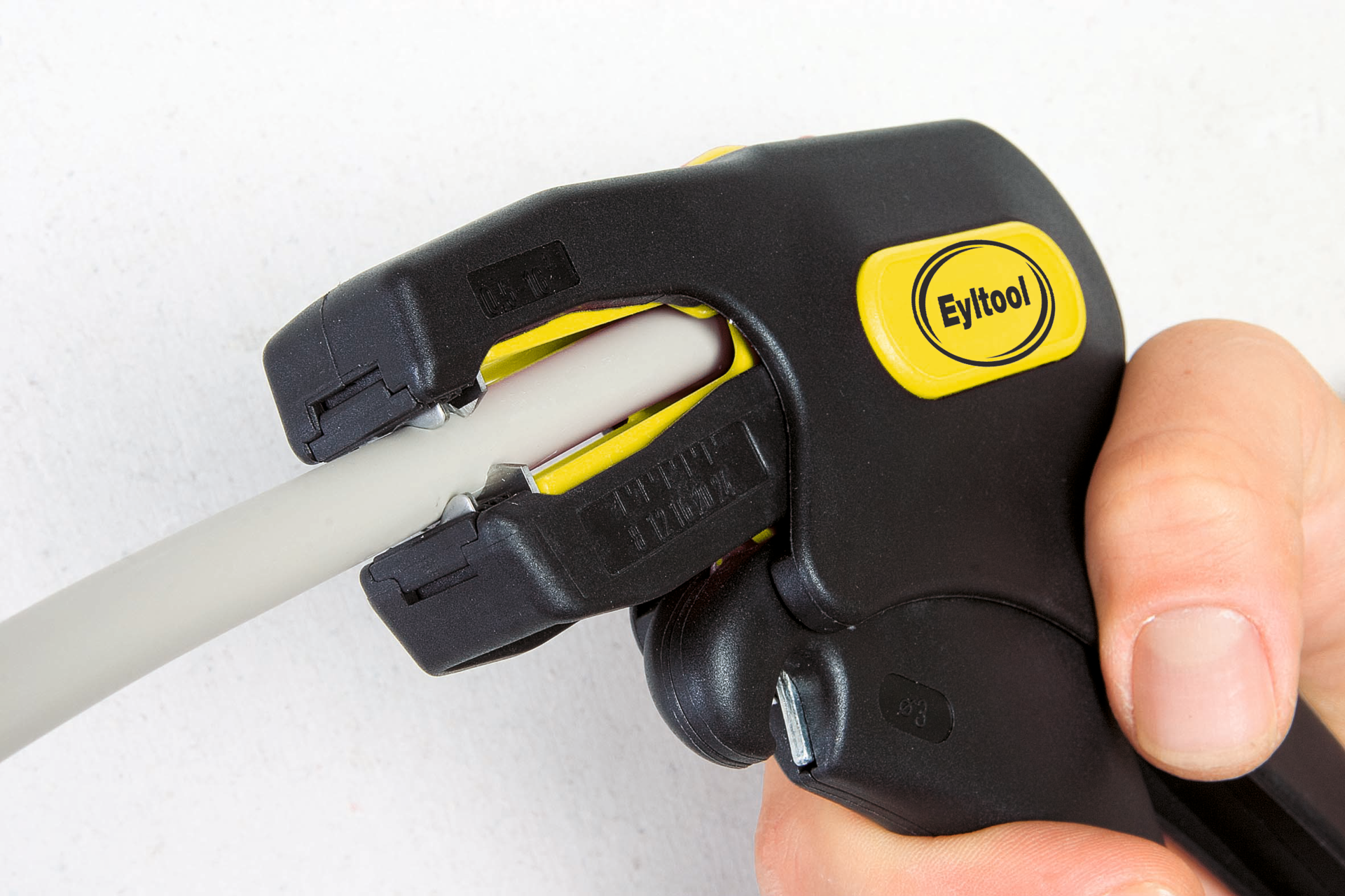 | Einsatz: | mit optischem Längenmaß 8-24 mm, Rundkabel: Abmanteln und Abisolieren von flexiblen Kabeln im Bereich von 0,5-16 mm², Flachkabel: Abmanteln und Abisolieren von zweiadrigen PVC-isolierten Flachkabeln von 0,75-1,5 mm² |