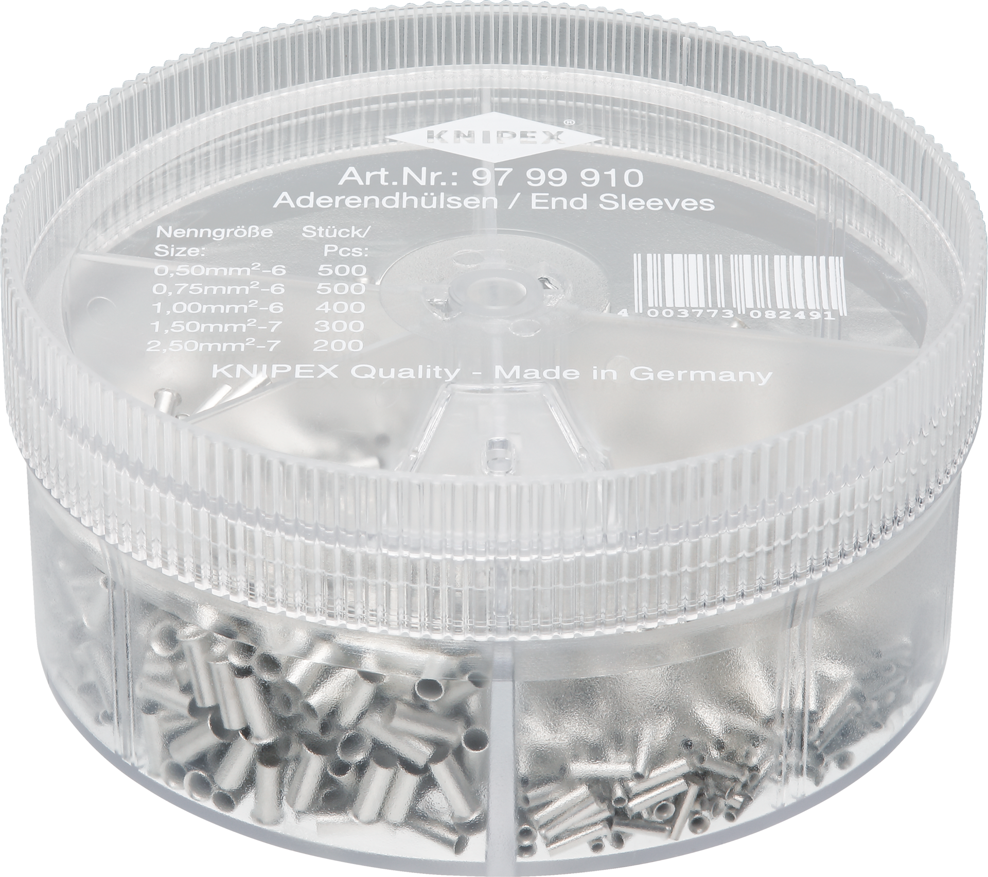 Aderendhülsen Satz in Kunststoffdose 0,5mm²-2,5mm² nicht isoliert