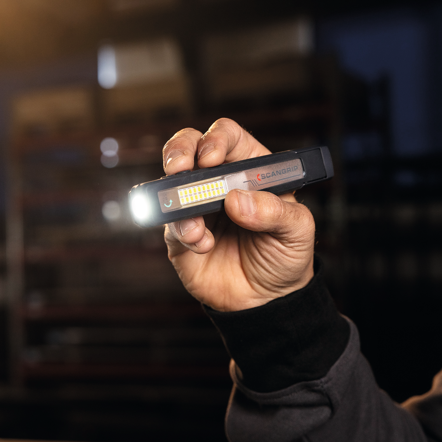 mit 20 LED, bruchfestes Gehäuse und robuster Gummioberfläche, flexibler Leuchtenkopf 180°, OptiLight-Funktion für optimierte Beleuchtung und Laufzeit, mit starkem Magnethalter, Halterungsclip, Dimmfunktion in 3 Stufen, mit Batteriestandsanzeige
