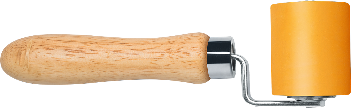 einseitig geführte Silikonwalze, mit Kugellager und Holzgriff