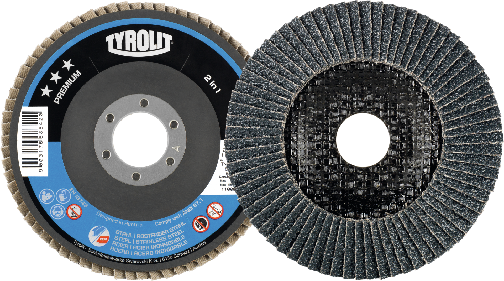 Fächerschleifscheibe "2in1" Stahl/VA Premium gewölbt D125mm K60