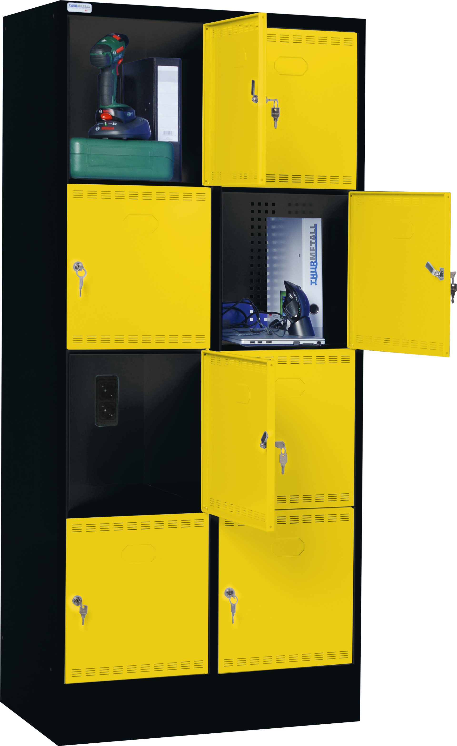 Fächerschrank mit 8 Ladefächern B810 x H1795 x T582mm schwarz/gelb