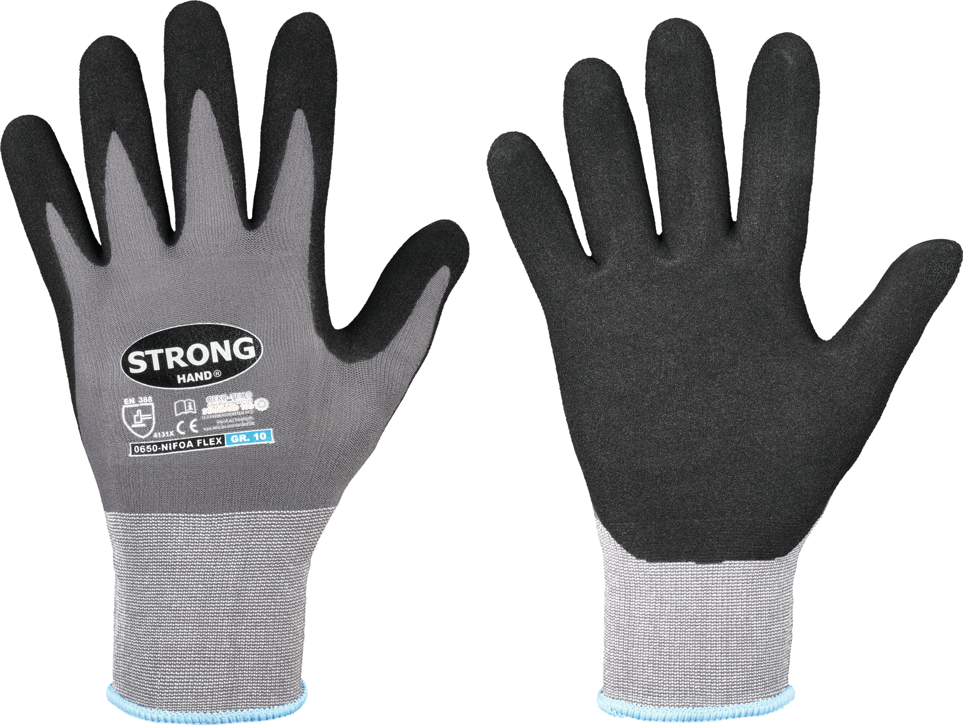 ausgezeichnetes Tastgefühl und optimale Passform, griffsichere und rutschfeste Handfläche mit Nitrilschaum-Beschichtung, öl- und wasserabweisend, besonders strapazierfähig, OEKO-TEX® Standard 100 zertifiziert, silikonfrei, CE CAT 2