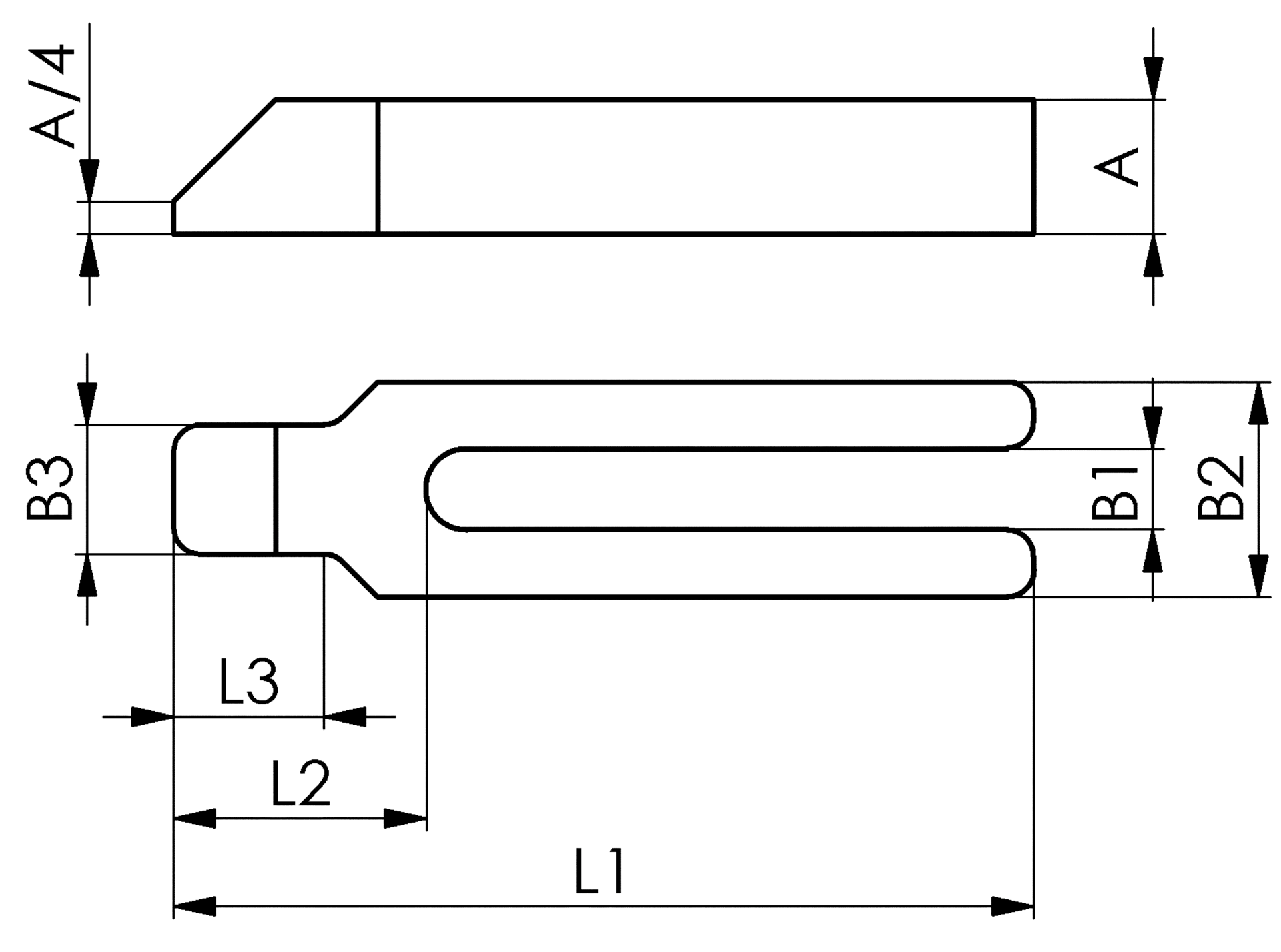 Gabelspanneisen abgeschrägt mit Nase M12/M14 DIN6315GN B14mm L160mm