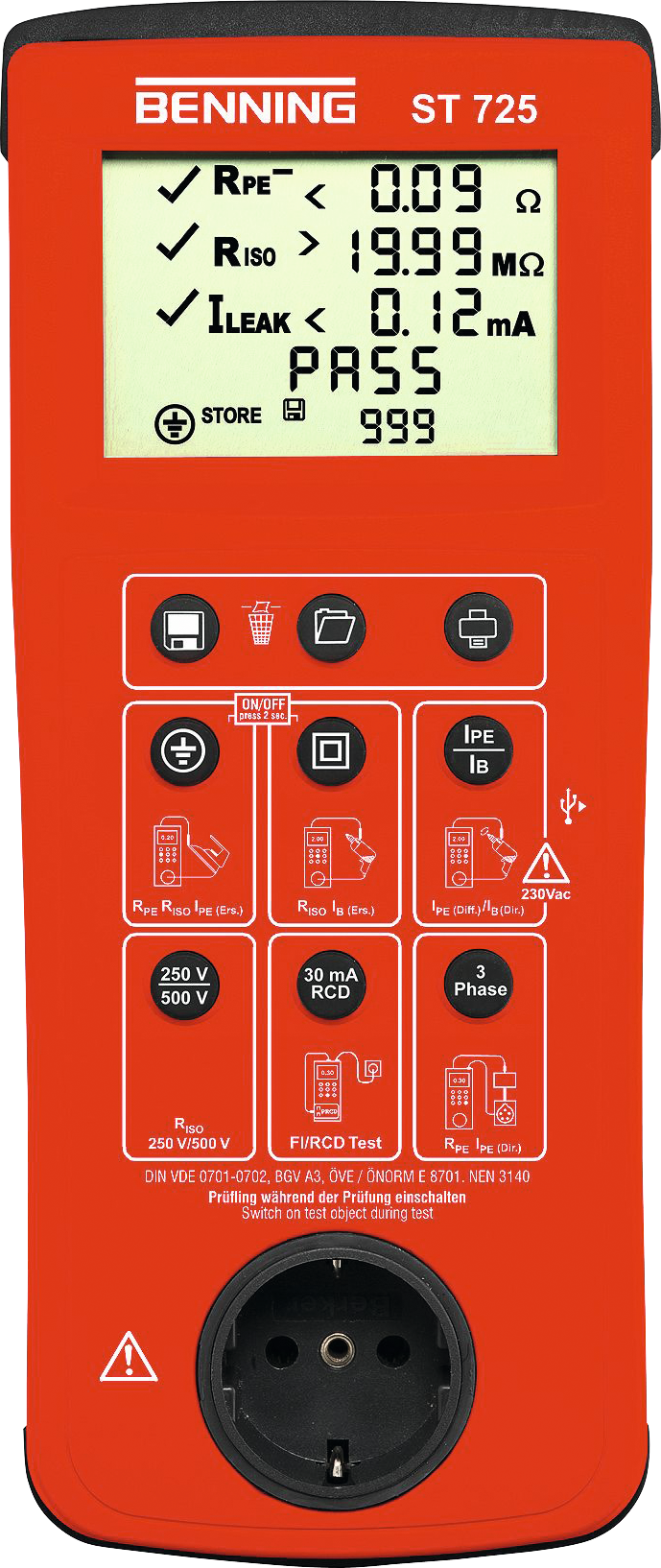 Gerätetester ST 725 VDE 0701-0702, DGUV Vorschrift 3 und BetrSichV BENNING ST 725
