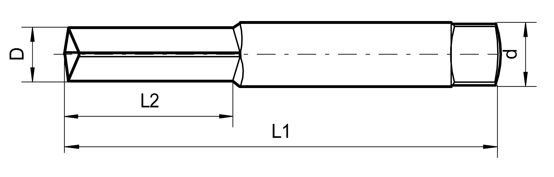 | Einsatz: | Der abgebrochene Gewindebohrer darf nicht über das Werkstück herausstehen (muss im Bohrloch stecken)! Die Standzeit des Gewindebohrerausbohrers beträgt ca. 3-5 Gewinde. Tisch- oder Ständerbohrmaschine: Schmierung trocken oder nass, Drehzahl 1000-2000 |