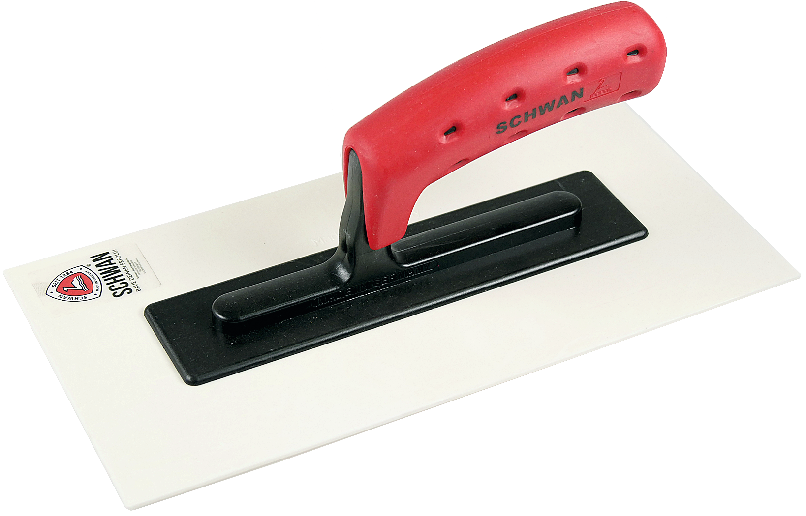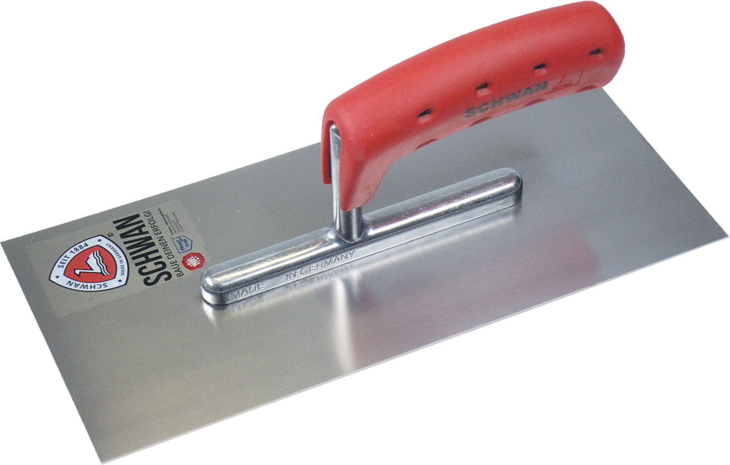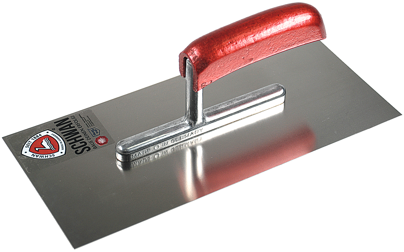 Glättkelle Bandstahl gehärtet mit gebogenem Holzgriff 280x130mm