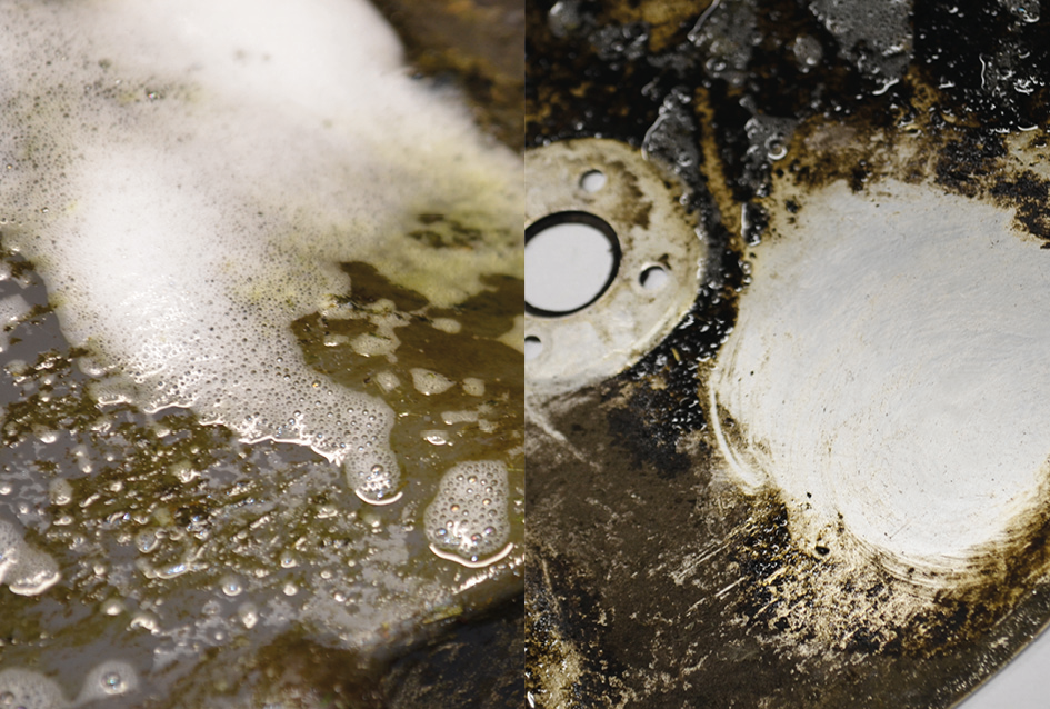 entfernt starke Harzverklebungen, Bitumen, Teer, Verkrustungen, Eingetrocknetes, Eingebranntes, Öl- und Treibstoffrückstände sowie sonstige organische Rückstände