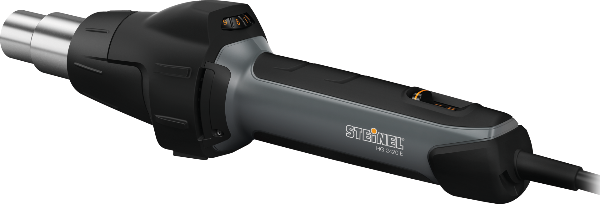 schlanker Griff mit Soft-Einsatz, Temperatureinstellung über Stellrad stufenlos regelbar, integrierter Feinstaubfilter, einfacher Netzkabeltausch