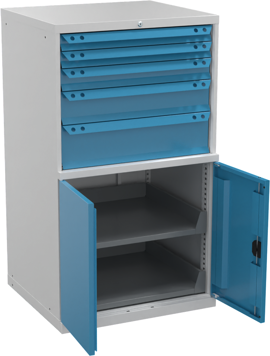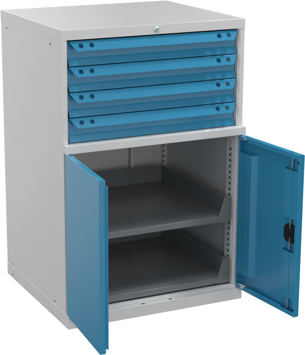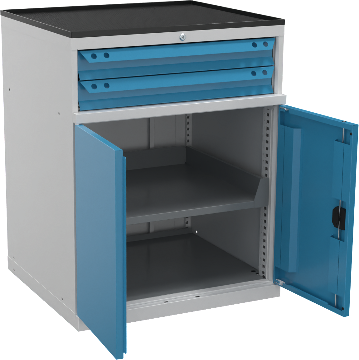 Maschinenschrank mit 1 Schublade 80kg RAL7035/5012 H800 x T695 x B805mm