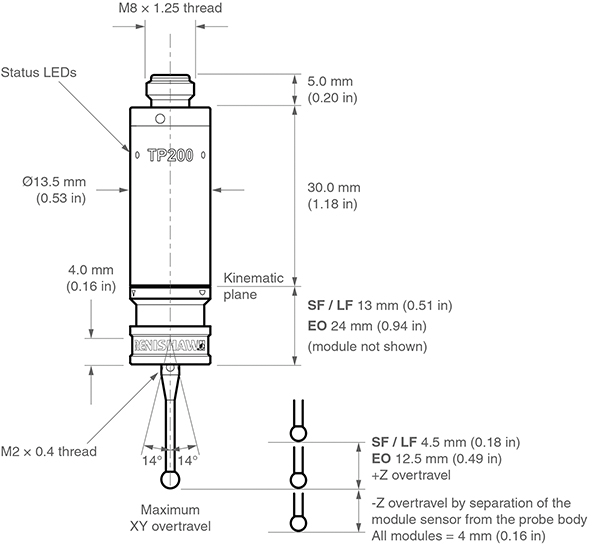 enthält elektromechanischen Senso, für Tasteinsätze mit Anschlussgewinde M2, kann an alle Tastköpfe mit Anschlussgewinde M8 eingesetzt werden
