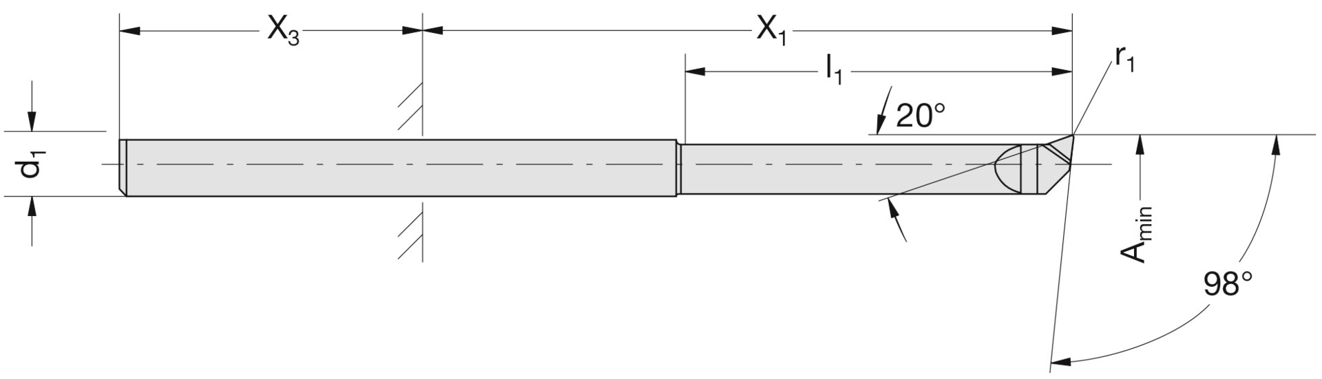 Mini-Ausdrehschneide VHM Ø0,4-6,5mm Amin4,0 x1=21,0-35,0