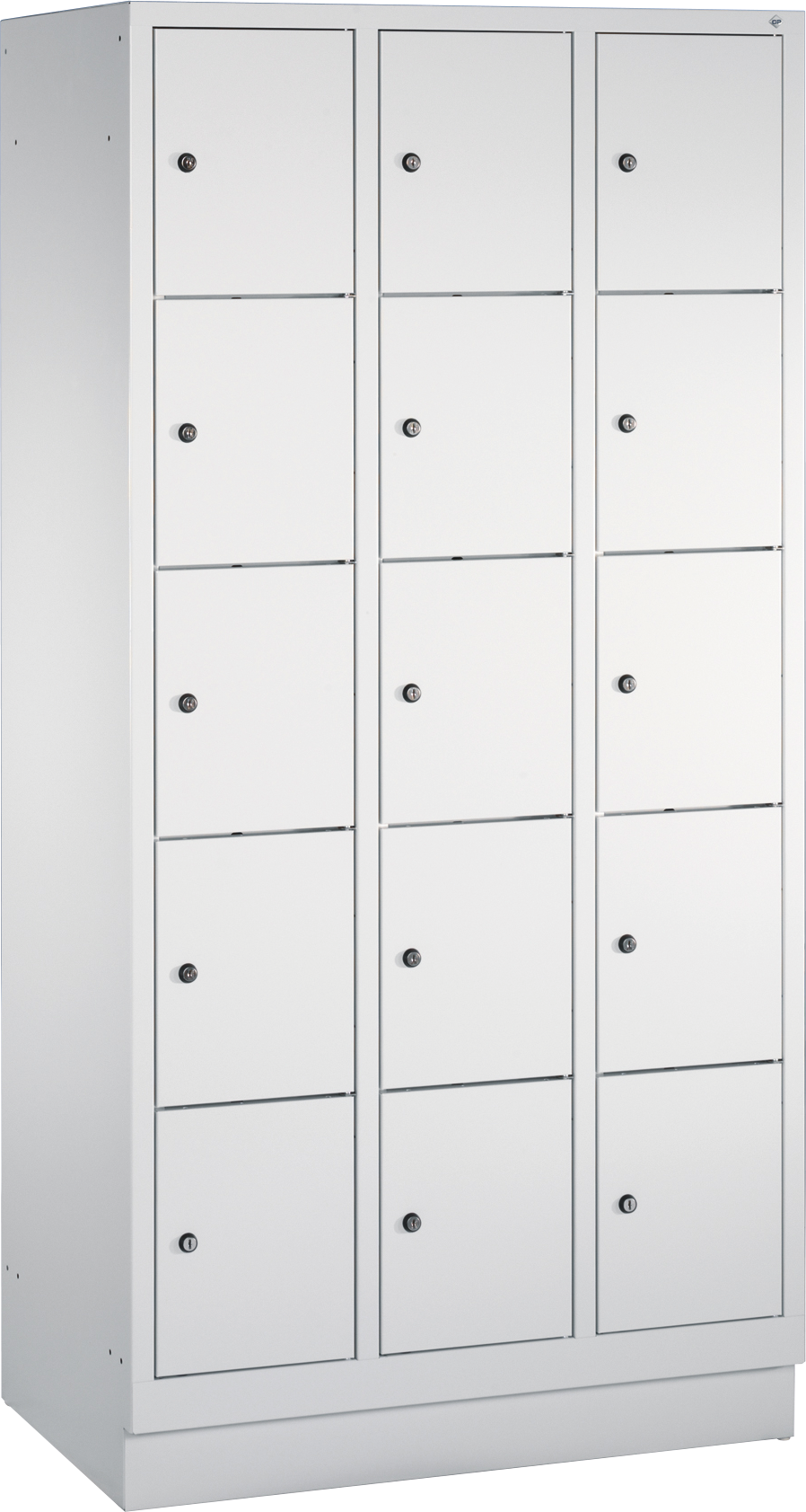- hochwertig verschweisste Stahlblechkonstruktion, Gehäuse mit 150 mm hohem Sockel - Türen schliessen bündig mit dem Schrankgehäuse ab, Öffnungswinkel ca. 110° - Drehbolzenlagerung - Vollblech-Türen, einschlagend, aus Sicherheitsgründen allseitig gerollt, rechts angeschlagen, Oberfläche aus Stabilitätsgründen gewölbt (bombiert), mit oberem und unterem Lochfeld zur Belüftung sowie mit Etikettenrahmen - standardmässig Key-Lock als Huwil-Plättchenzylinderschloss, weitere mechanische oder elektronische Schliessmöglichkeiten auf Anfrage lieferbar- 8 Fächer - lichtes Durchlassmaß: H 400 mm x B 400 mm x T 500 mm - jedes Fach beinhaltet ein Energiemodul mit zwei Steckdosen 230 VoltHinweis:Die Räumlichkeiten in welcher die Schränke aufgestellt werden, sollten durch eine zentrale Brandmeldeanlage (BMA) überwacht werden!