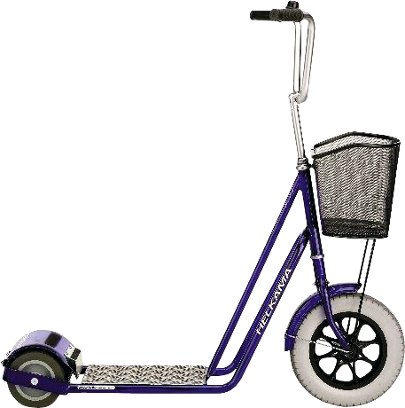 stabil und wendig, pulverbeschichteter Rohrrahmen, 3 graue Vollgummiräder mit Fußbremse für Hinterrad, rutschfeste Plattform und Trittfläche, mit Klingel