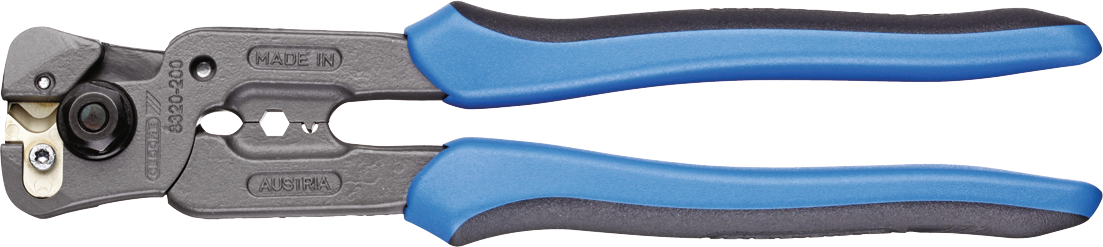leicht auswechselbare Schneidplatten, extrem hohe Standzeit gegenüber traditionellen Drahtseilschneidern, extrem weicher Scherschnitt verhindert zuverlässig das Aufspleißen des Drahtseils, Schneidenhärte 62-65 HRC, geringer Kraftaufwand durch optimale Schneidengeometrie, zwei integrierte Pressprofile für Bowdenzug-Abschlusshülsen und Drahtseil-Endhülsen, nachstellbares Gelenk für präzise Schneidplattenführung, Verriegelung gegen ungewolltes Öffnen, Zweikomponenten-Griffschutzhüllen, klar lackiert