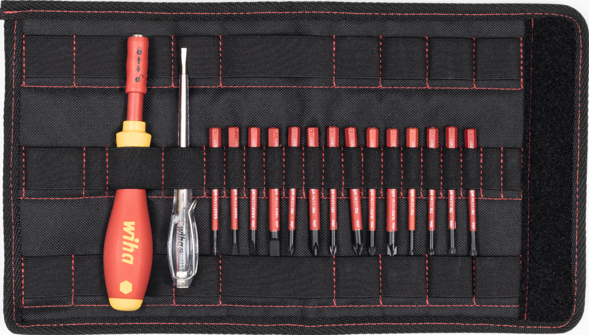 Schraubendreher Satz VDE slimVario 16-tlg. Bithalter und alle gängigen slimBits + Spannungsprüfer in Rolltasche