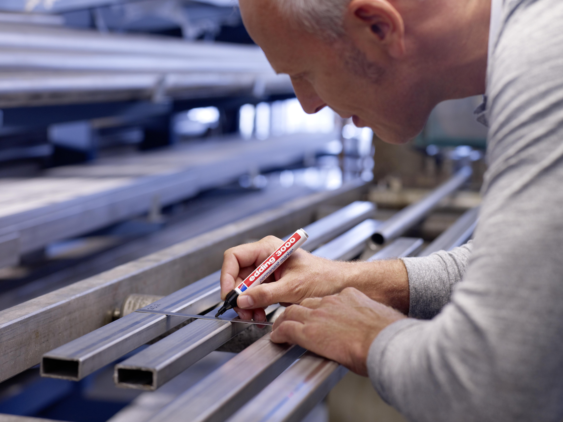 mit Rundspitze bei Schriftbreite 1,5-3 mm bzw. Keilspitze bei Schriftbreite 1-5 mm, licht- und hitzebeständig, wisch- und wasserfest, schnell trocknend, geruchsarm und nachfüllbar, ohne Zusatz von Toluol/Xylol