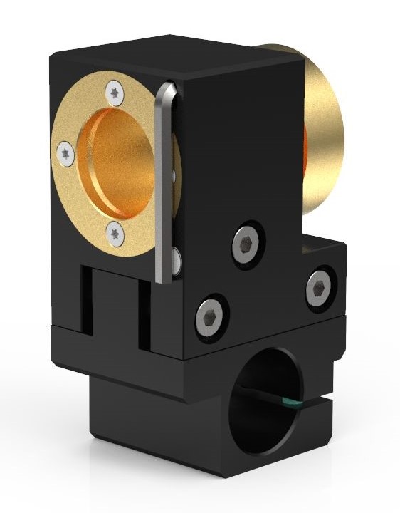 Aluminium, black anodized Dimensions (WxHxD): 35 x 77 x 65mm Functions: - Roll laser around the longitudinal axis (360°) - Pitch laser around the transverse axis - Move laser parallel to the transverse axis (±4.5mm) - Yaw laser around vertical axis (±5°) |