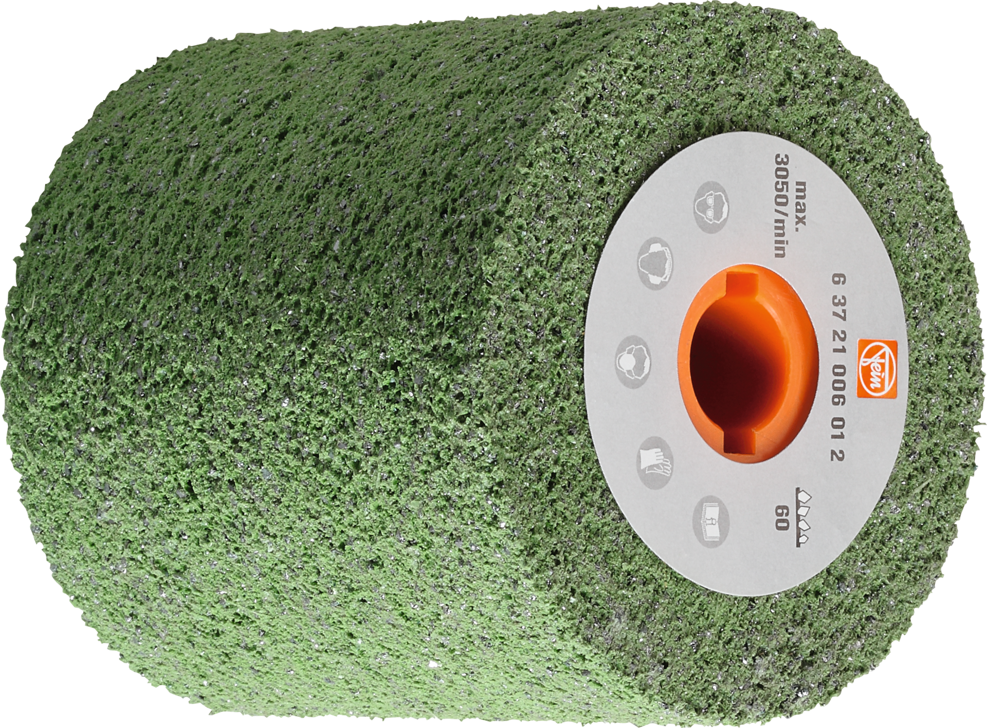 elastische Polyurethanwalze, durch Einbindung des Korns in eine Gummimischung entspricht Korn 60 einem Schliffbild ähnlich Korn 180-220 und Korn 180 einem Schliffbild ähnlich Korn 240-280