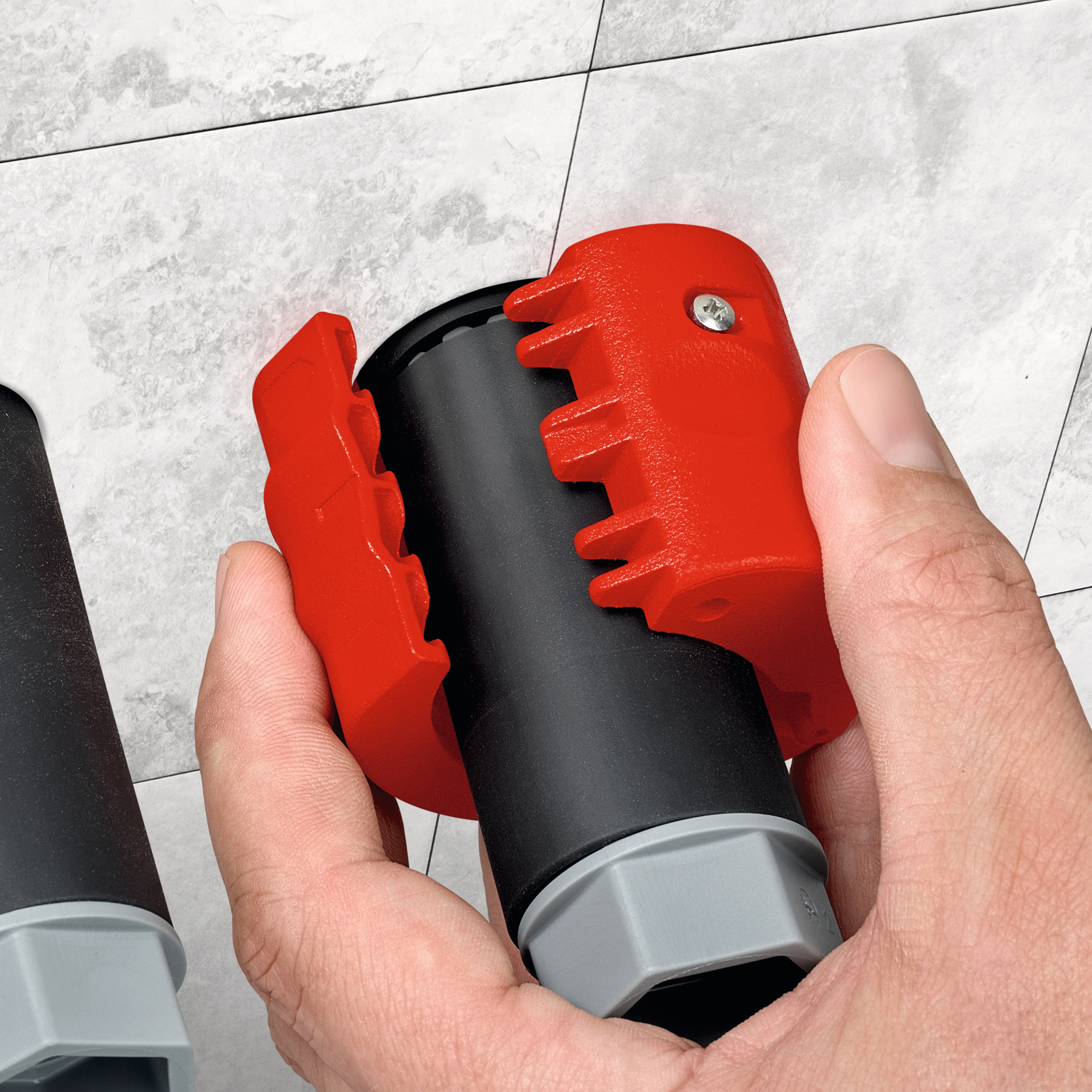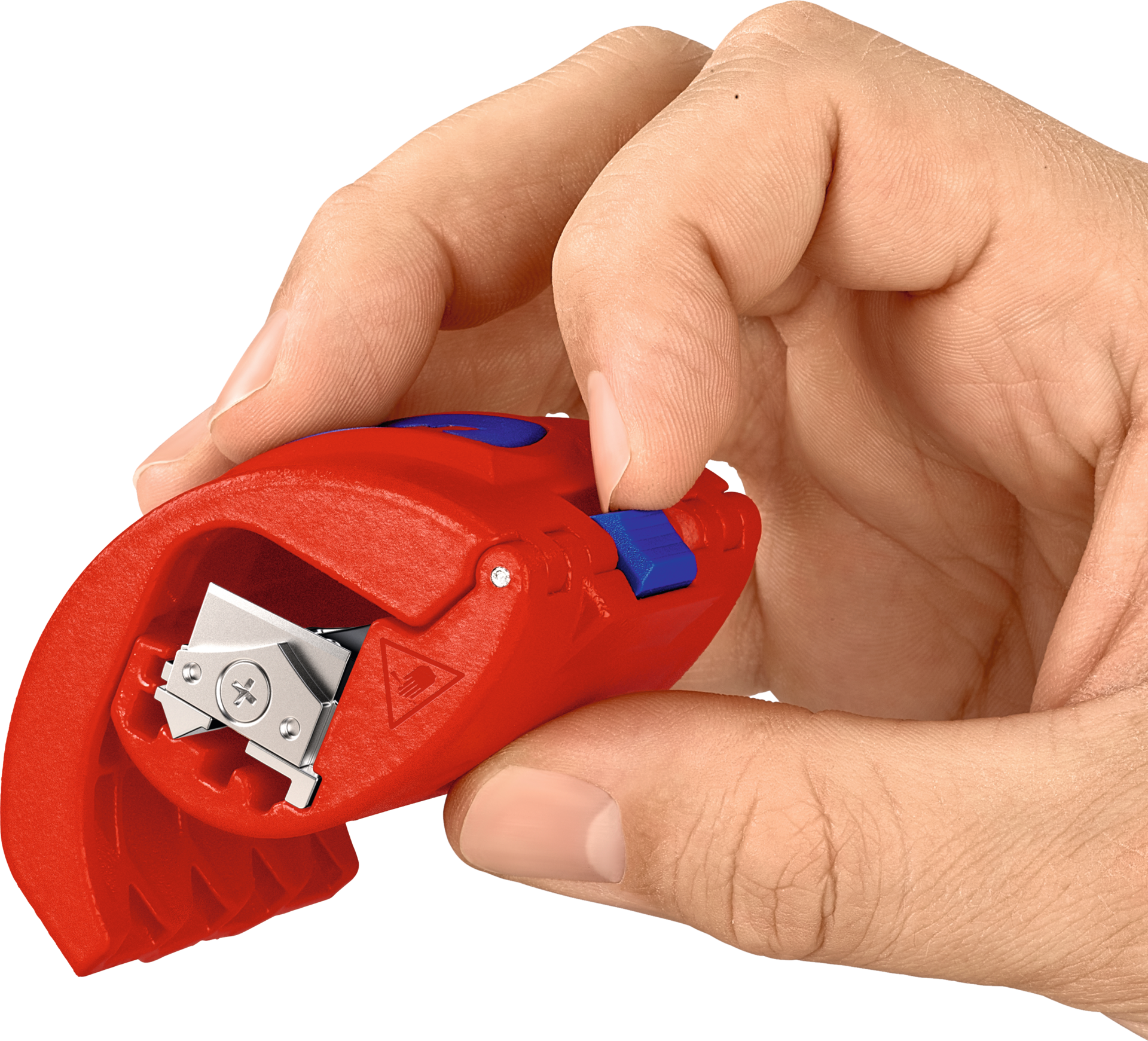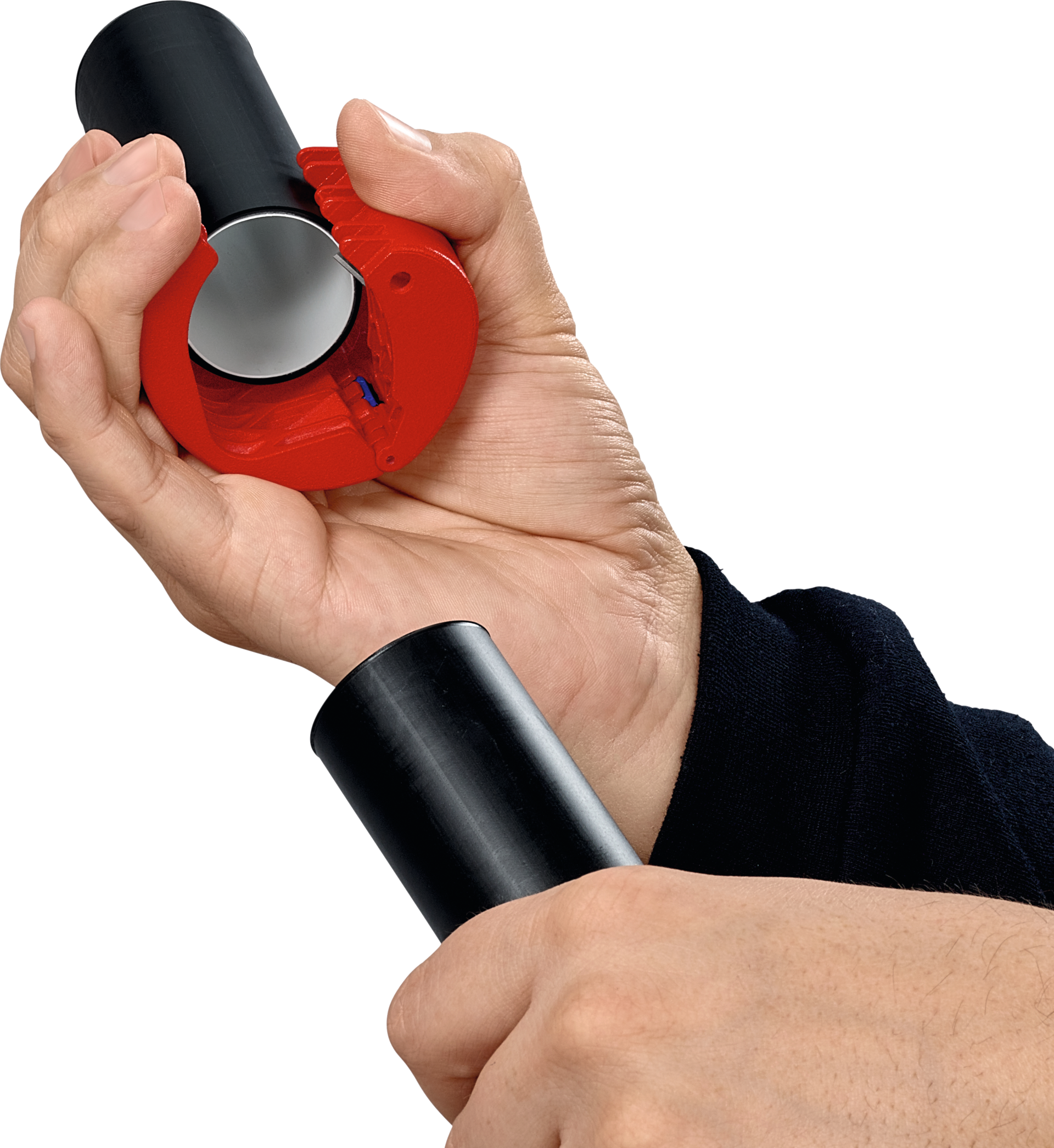 trennt Rohre sauber und spanlos in wenigen Umdrehungen, mit Verschlussmechanismus zum sicheren Transport, durch drehbaren Messerblock lassen sich Tropf- und Dichthülsen zuverlässig 2-3 mm vor der Wand einkürzen