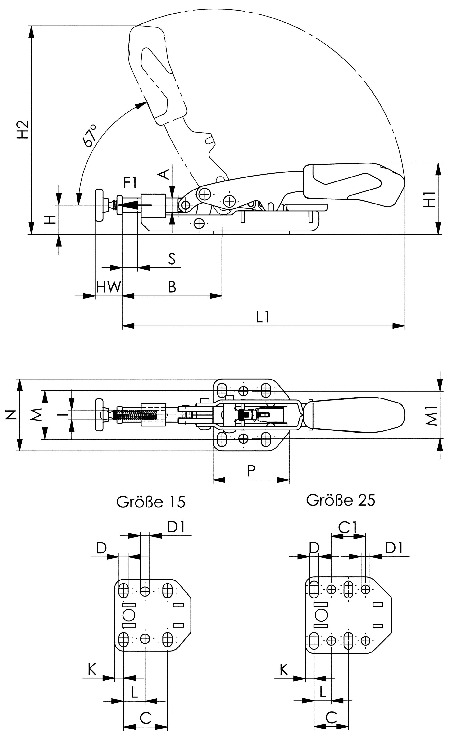 Schubstangenspanner waagerechter Fuß und variabler Spannhöhe Gr. 25 M8x50