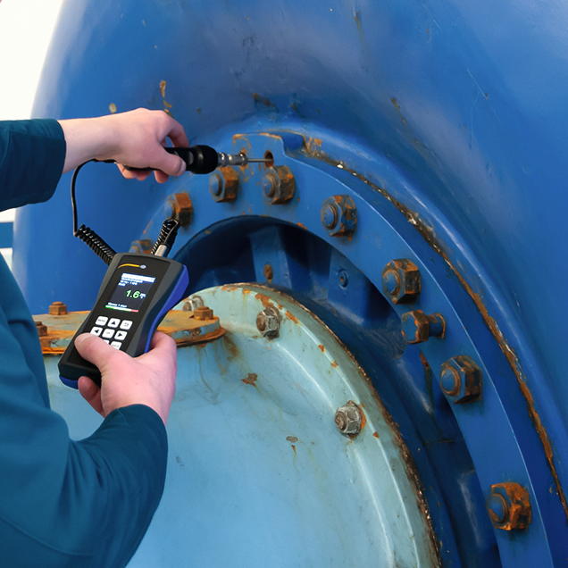 Messgerät gibt die Schwingbeschleunigung, Schwinggeschwindigkeit und Schwingweg direkt am farbigen Display an, schnell und sicher Unwucht und sich entwickelnde Lagerschäden detektieren und verfolgen, Modus für die Messung nach ISO 10816-3, automatische Anzeige der Gut-Schlecht-Bewertung im Display