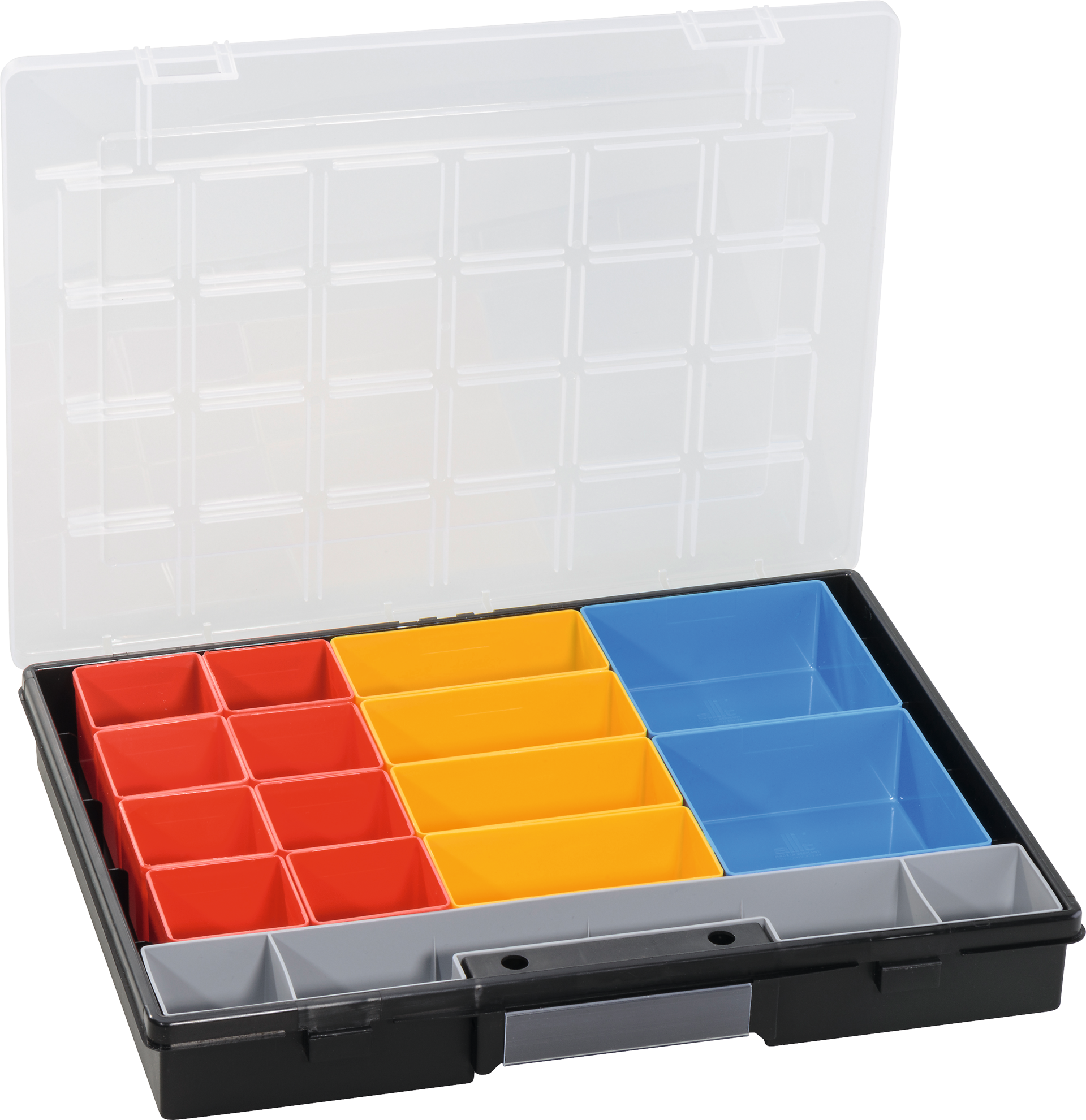 Sortimentskasten FLEX farbig mit 15 Boxen 370x295x60mm