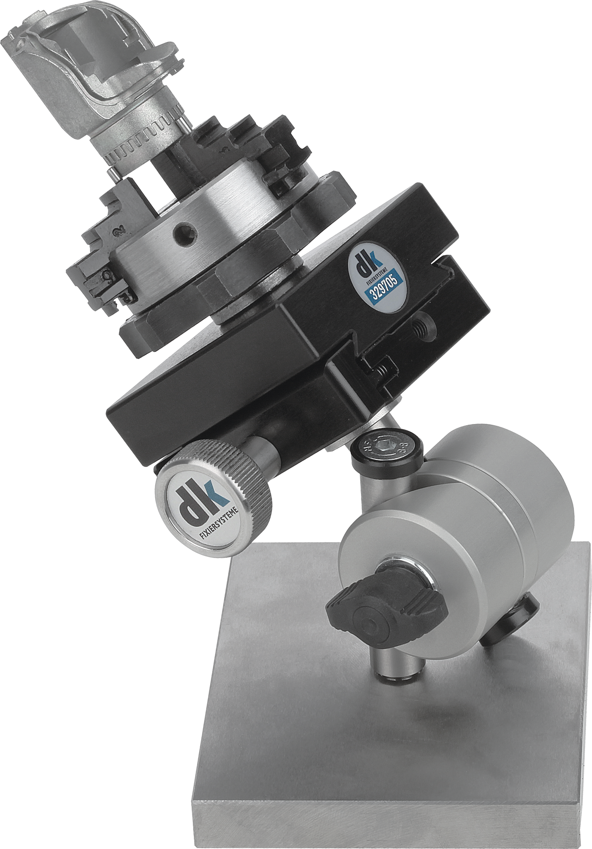 werkzeugloser Backenwechsel, umkehrbare Backen zum Innen- und Außenspannen, Stiftbohrungen Ø 2 mm, montiert auf Schnellwechseladapter SWA39