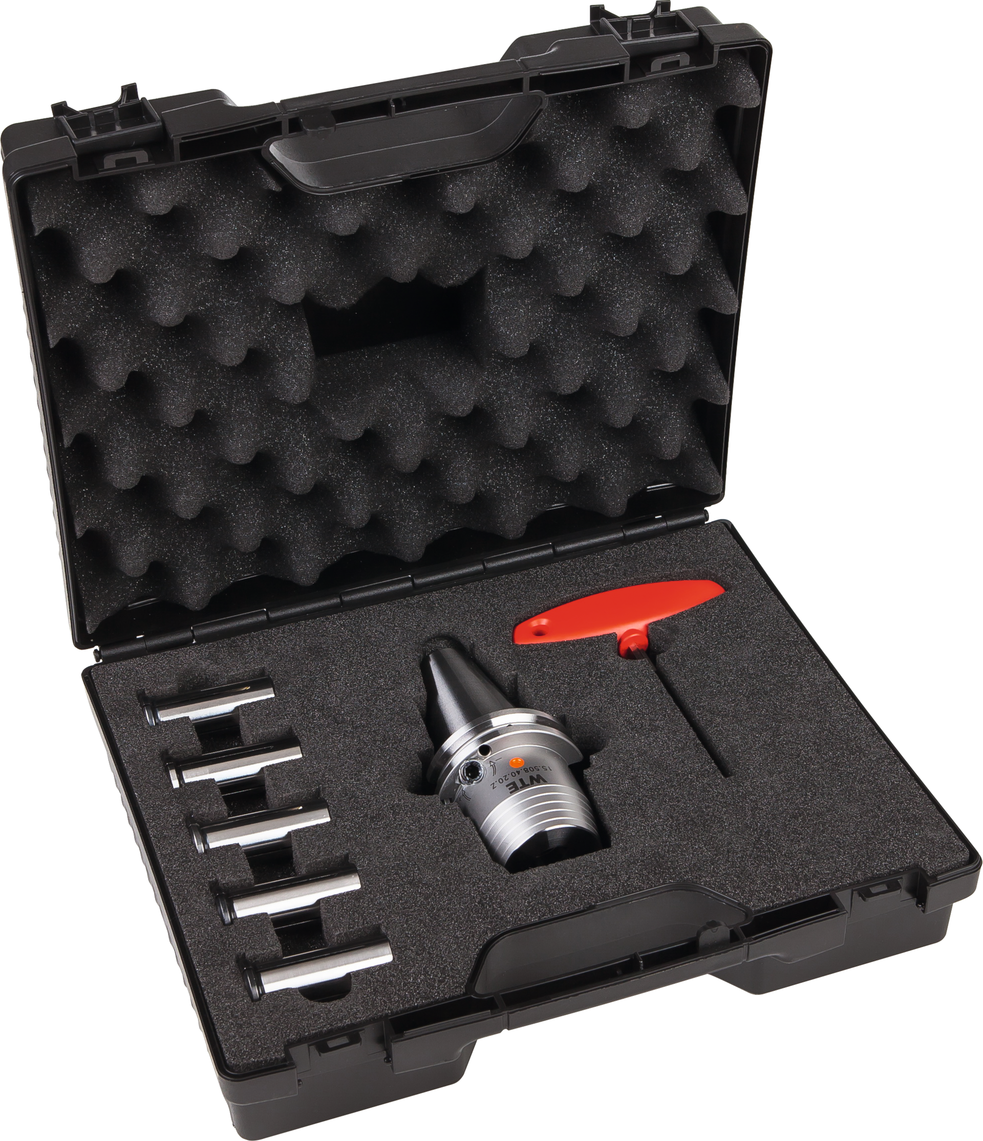 Hydro-Dehnspannfutter HPH, Sechskantschlüssel, 5 Reduzierhülsen ( Ø 6, 8, 10, 12, 16 mm) und Kunststoffkoffer