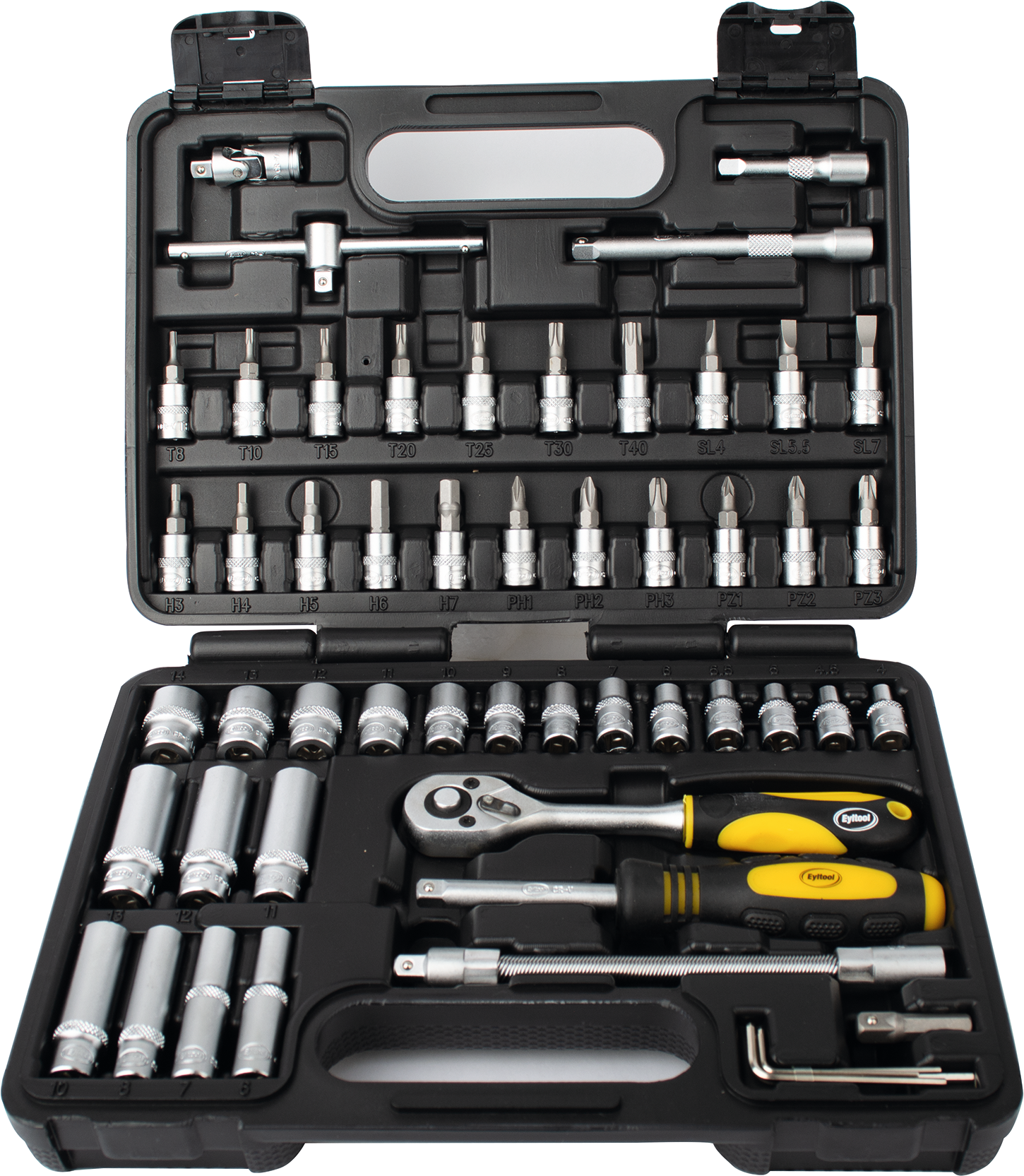 - 21 Bit-Stecknüsse 1/4": Schlitz 4 - 6,5 - 7 mm, Phillips® PH1 - PH2 - PH3, Pozidriv® PZ1 - PZ2 - PZ3, Sechskant SW 3 - 4 - 5 - 6 - 7 mm, Torx® T8 - T10 - T15 - T20 - T25 - T30 - T40
