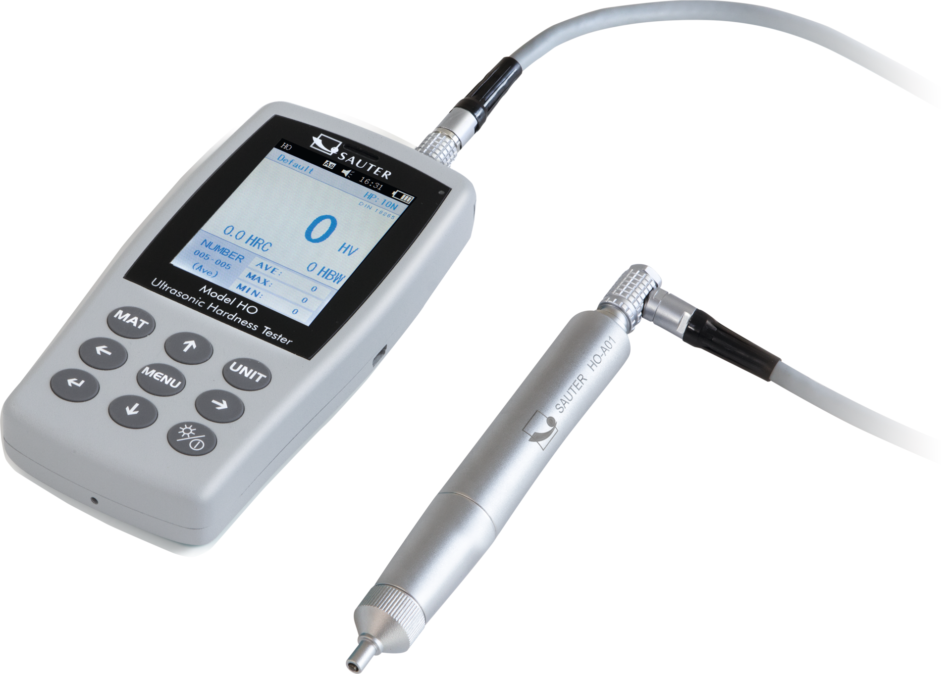 | Anzeige: | Messwertanzeige von Rockwell (A, B, C, D), Vickers (HV), Brinell (HBS, HBW) und zusätzlich HK, HR15N, HR45N, HS, HRF, HR15T, HR30T, HR45T |