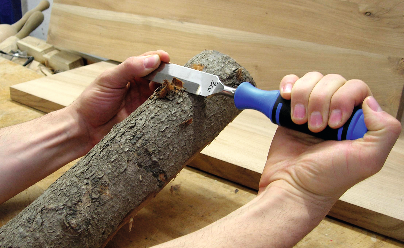 Frontschneide 26 mm breit für stemmende und hebelnde Arbeiten, Seitenschneide 90 mm für alle schneidenden Anwendungen, gehärteter Rücken kann mit Kunststoff- oder Holzhammer genutzt werden, Schneiden beidseitig geschliffen und hochglänzend poliert
