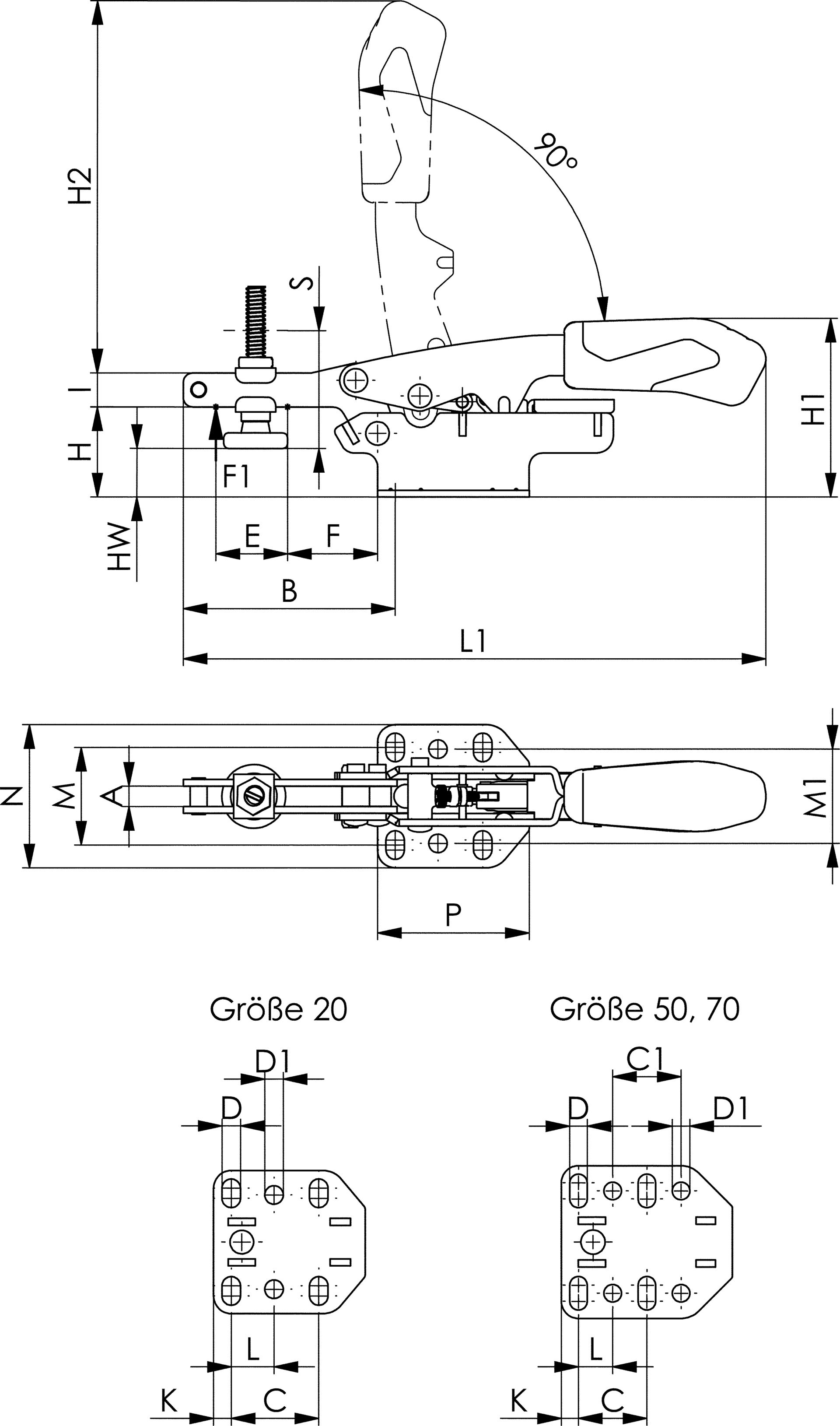 Waagerechtspanner waagerechter Fuß und variabler Spannhöhe Gr. 50 M8x39
