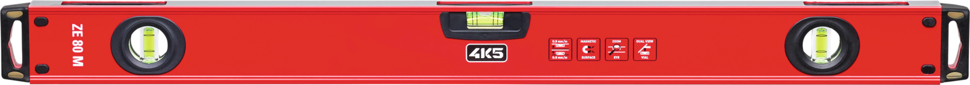 zwei gefräste Sohlen (bis Länge 100 cm), tonnenförmige Horizontal- und zwei Vertikallibellen aus Plexiglas, gummierte Endkappen und Wand-Rutschstopper, durchgängiger Profil-/Libellensteg (durchgängige Abzugs- und Anreißkante), mit Seltenerdmagneten (2 bei Länge 80 cm, 4 bei Länge 180 cm), Plumb Site® Dual-View™-Libelle (einzigartige Frontansicht der vertikalen Libelle), ohne Durchgrifföffnung bei Länge 800 mm, Länge 1800 mm mit zwei Durchgrifföffnungen